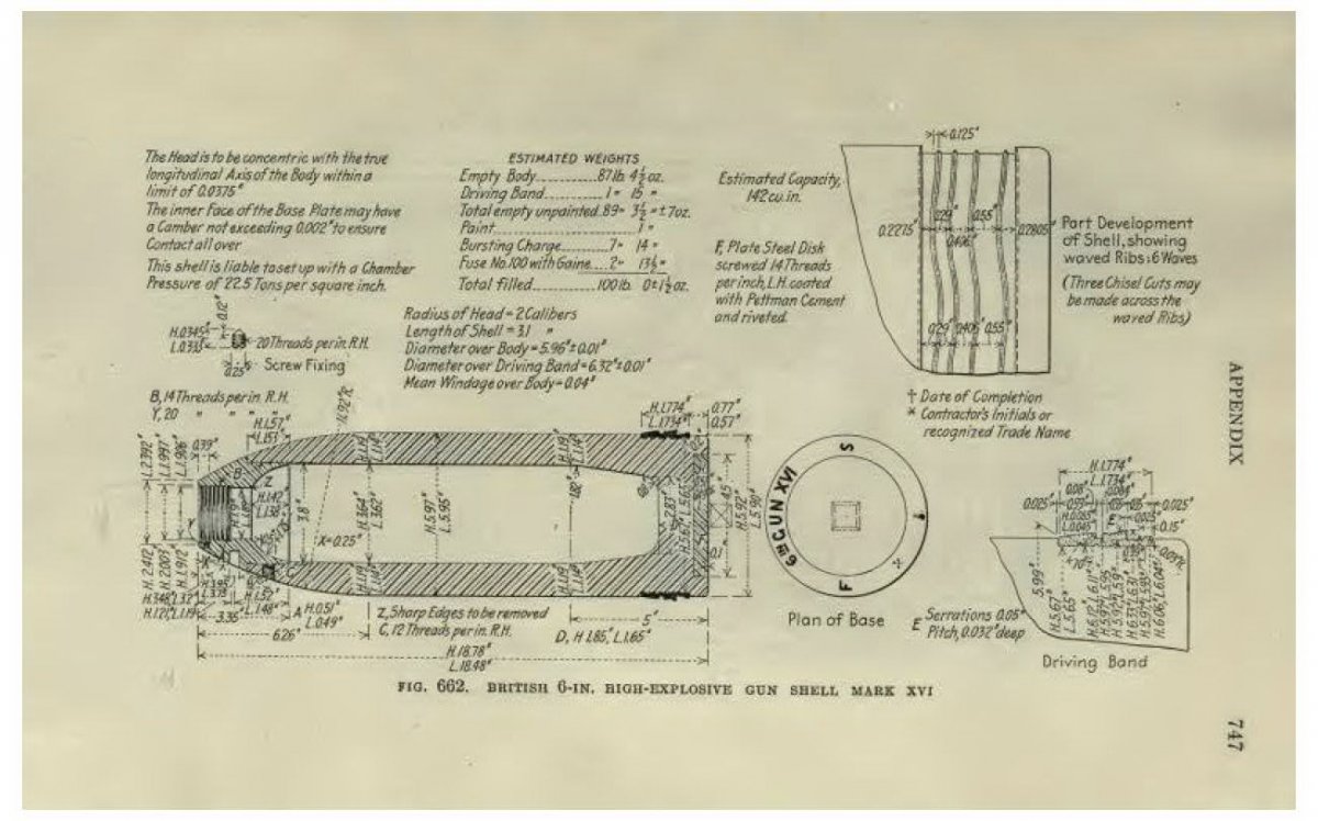 Фугас, фугас...Не сомневайтесь. Британец. Думаю 152-мм (6-дюймовый). Картинка с размерами только такая. В голове взрыватель непредохранительного типа №100. Описан в книге В.И. Рдултовского "Исторический очерк развития трубок и взрывателей...."