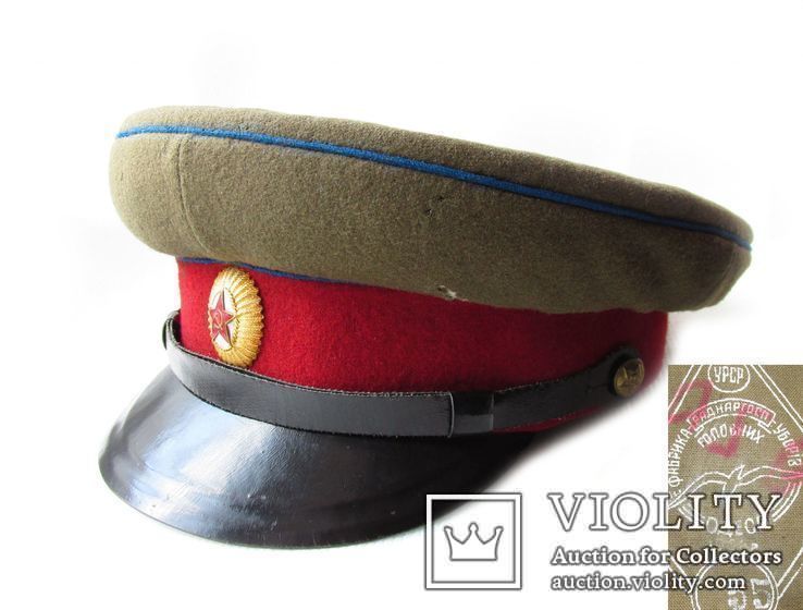 фуражка офицера артиллерии (танковых войск) СА 60х годов. Козырек не перешит, он просто укреплен по краям. Вместо звездочки должна стоять овальная кокарда.