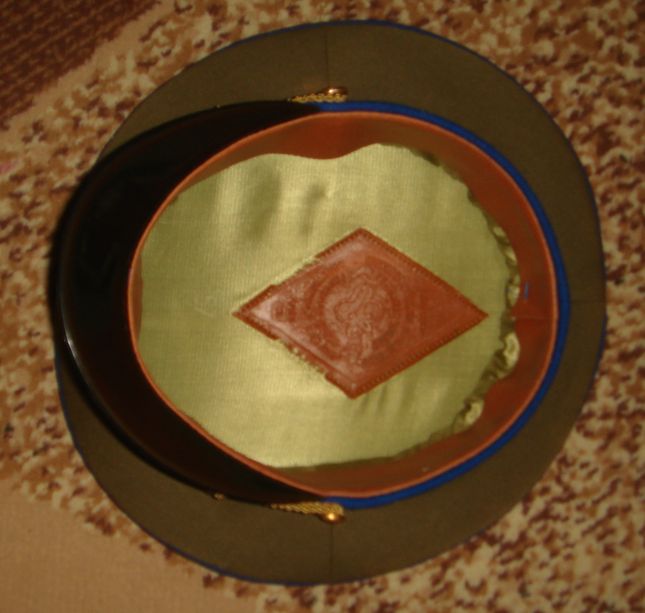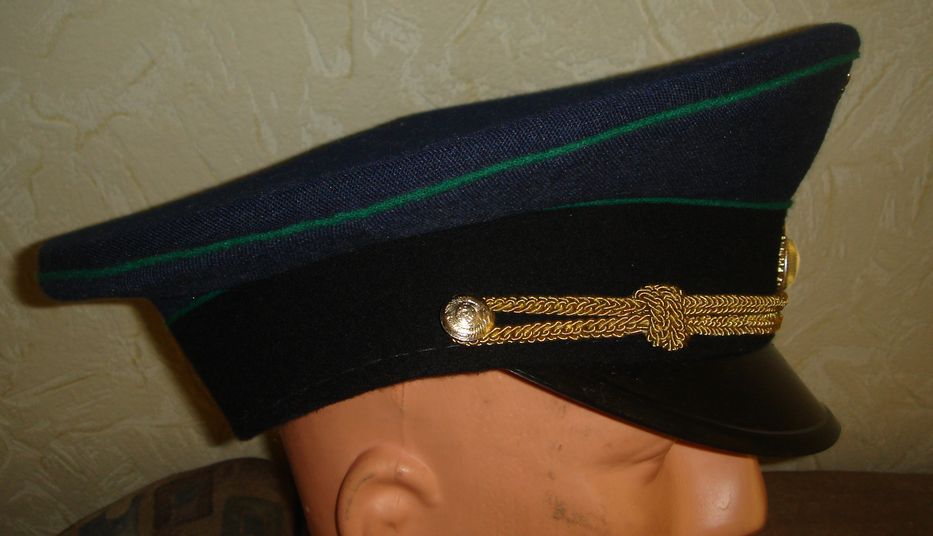 Фуражка офицера ПВ КГБ СССР. Новая, складского хранения, в употреблении не была,но в верхней части есть точечные повреж- дения от моли, - поэтому указываю как "Б\У". Размер средний. Цена 200 грн.
