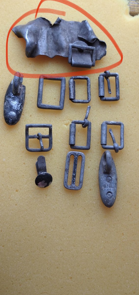 Всё представленное на фото- фурнитура вермахт, вижу от ремня на противогазный бак и от допремней, в следующий раз нумеруйте.