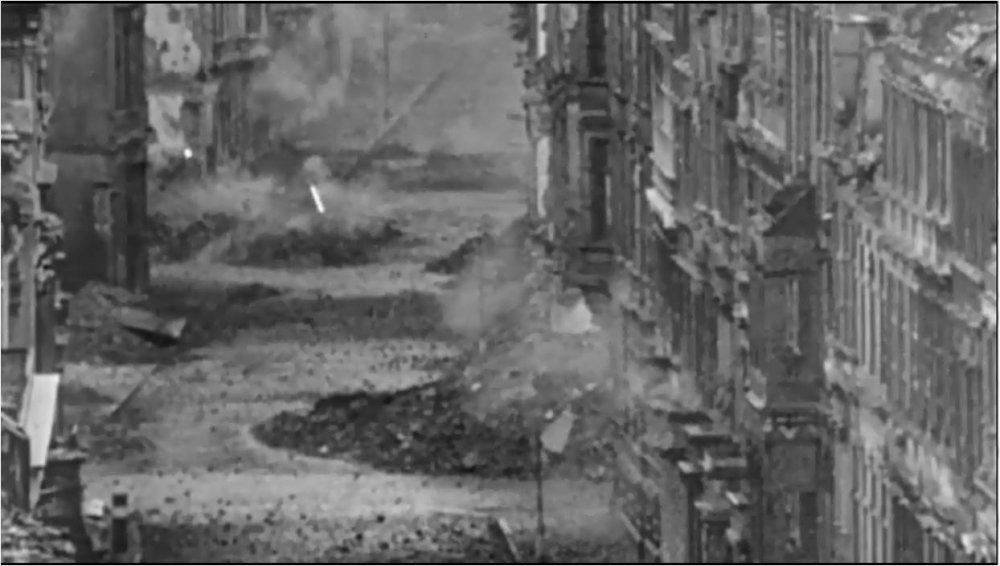 Кроме того, в серии 19 (август-март 1945) "Мир в войне" на 49 минуте показывают американцев в бою за немецкий город, и там среди бела дня они также используют трассера. На скрине не очень хорошо видно , лучше просмотреть. В "Райане" опять-таки перед финальным боем, не помню кто, заряжающий пулемет, произносит классическую фразу "Здесь каждая пятая пуля - трассирующая", однако при стрельбе мы этого почему-то не видим