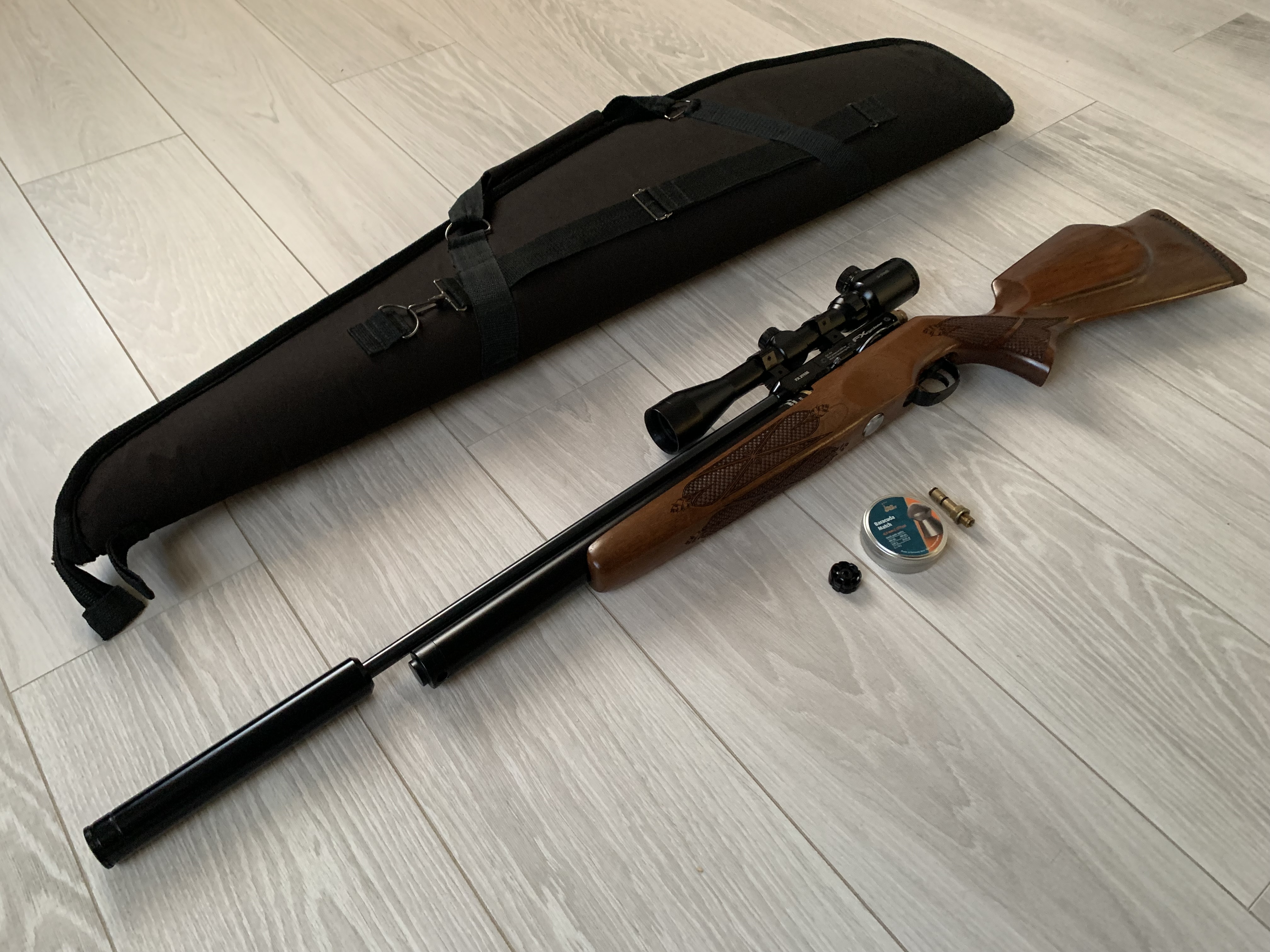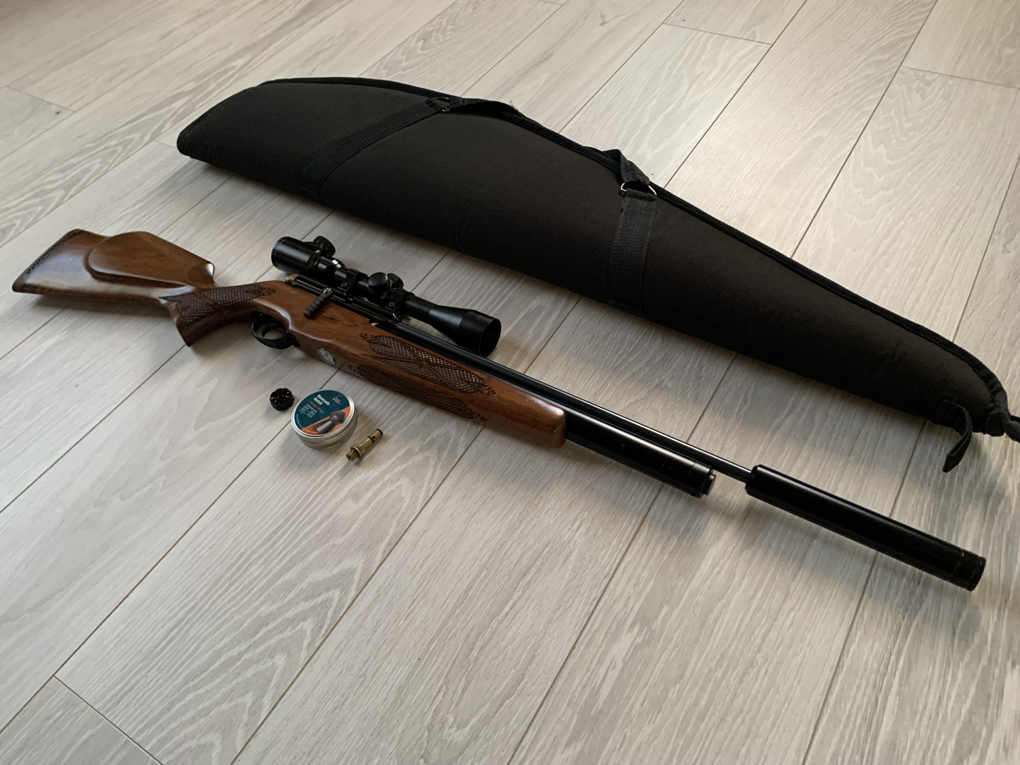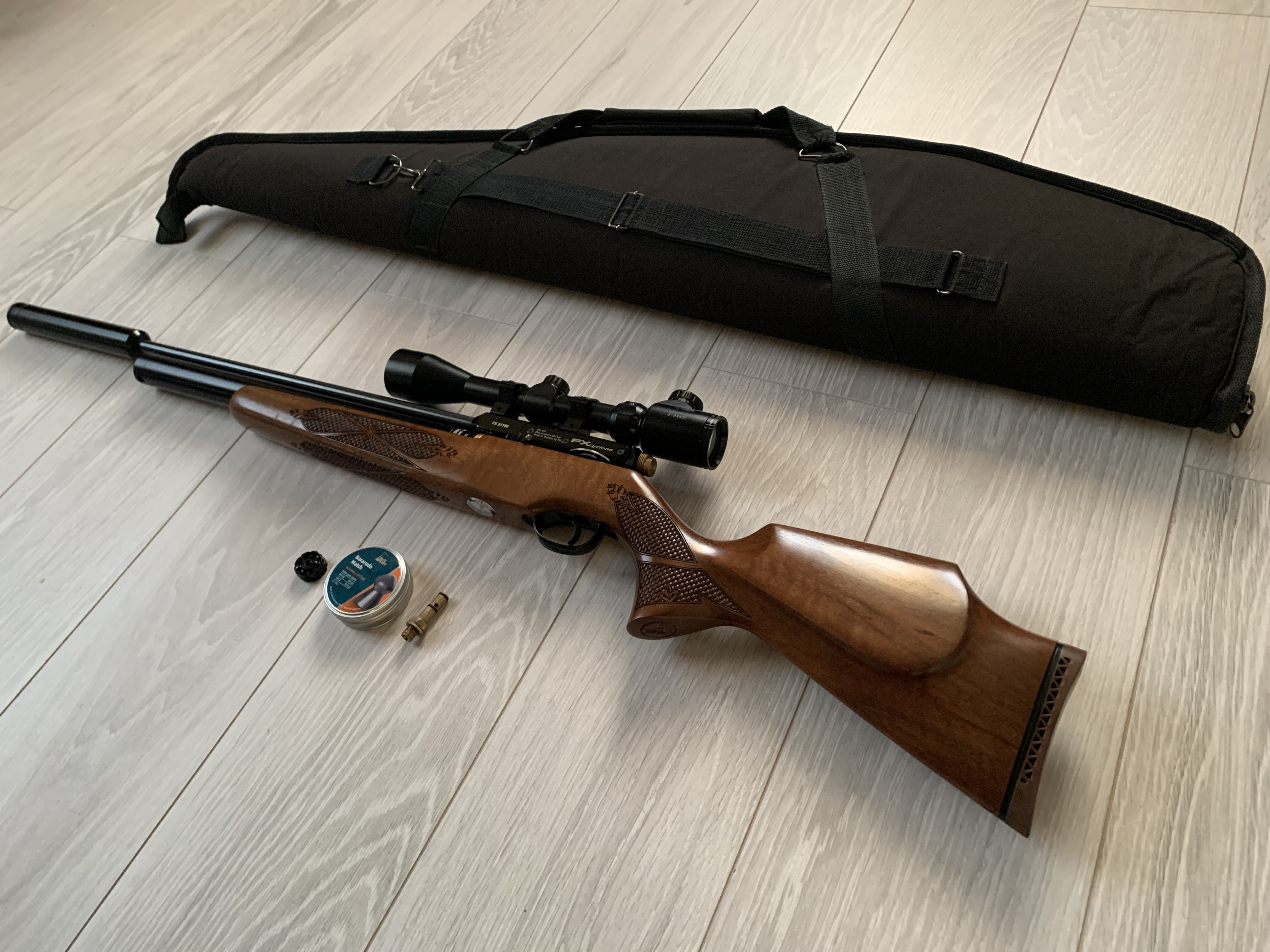 Гвинтівка , в чудовому стані. В комплекті : Чохол. Оптичний приціл 3-9/40 з підсвіткою. Один барабанчик. Штуцер , для закачки.