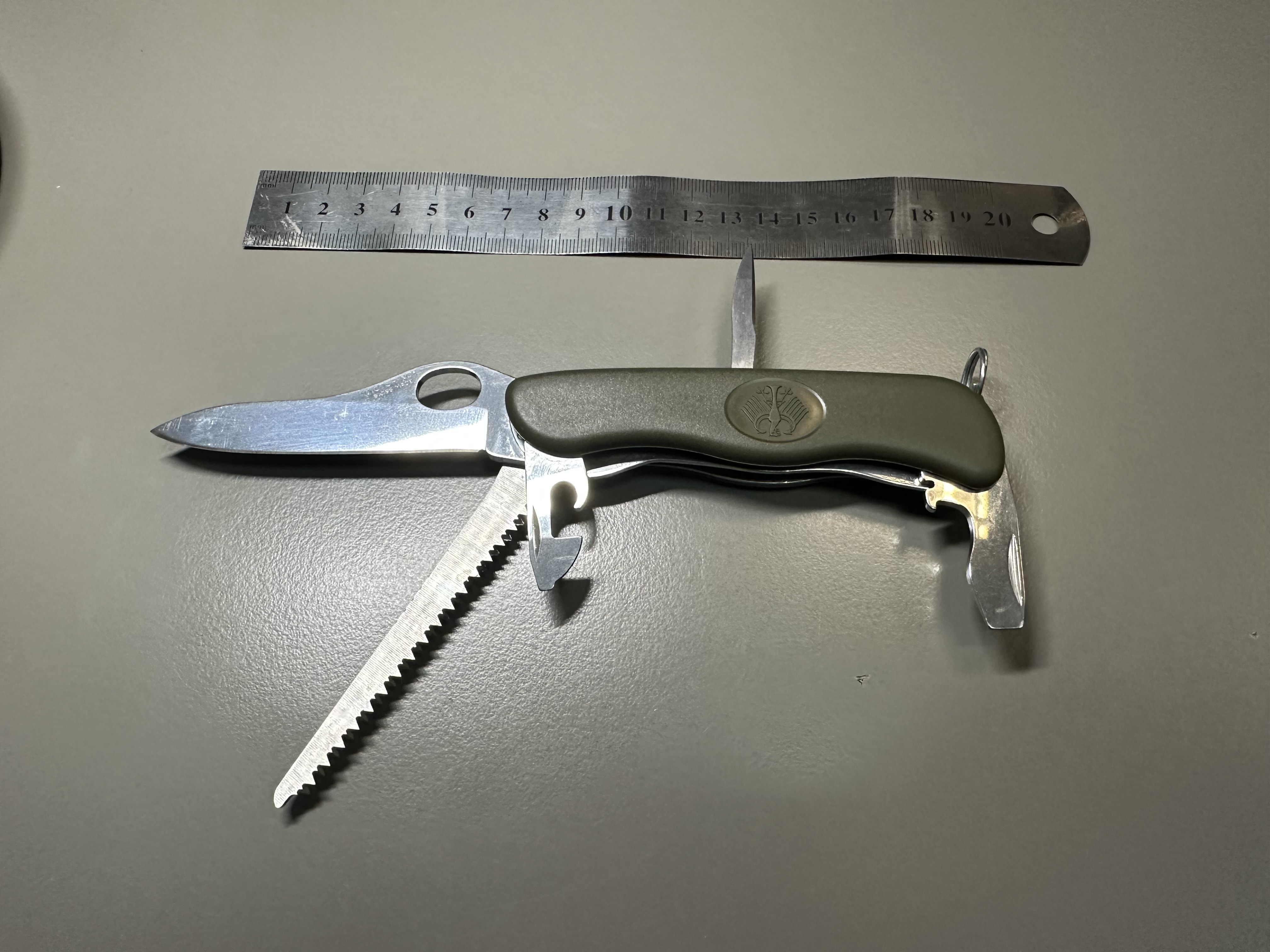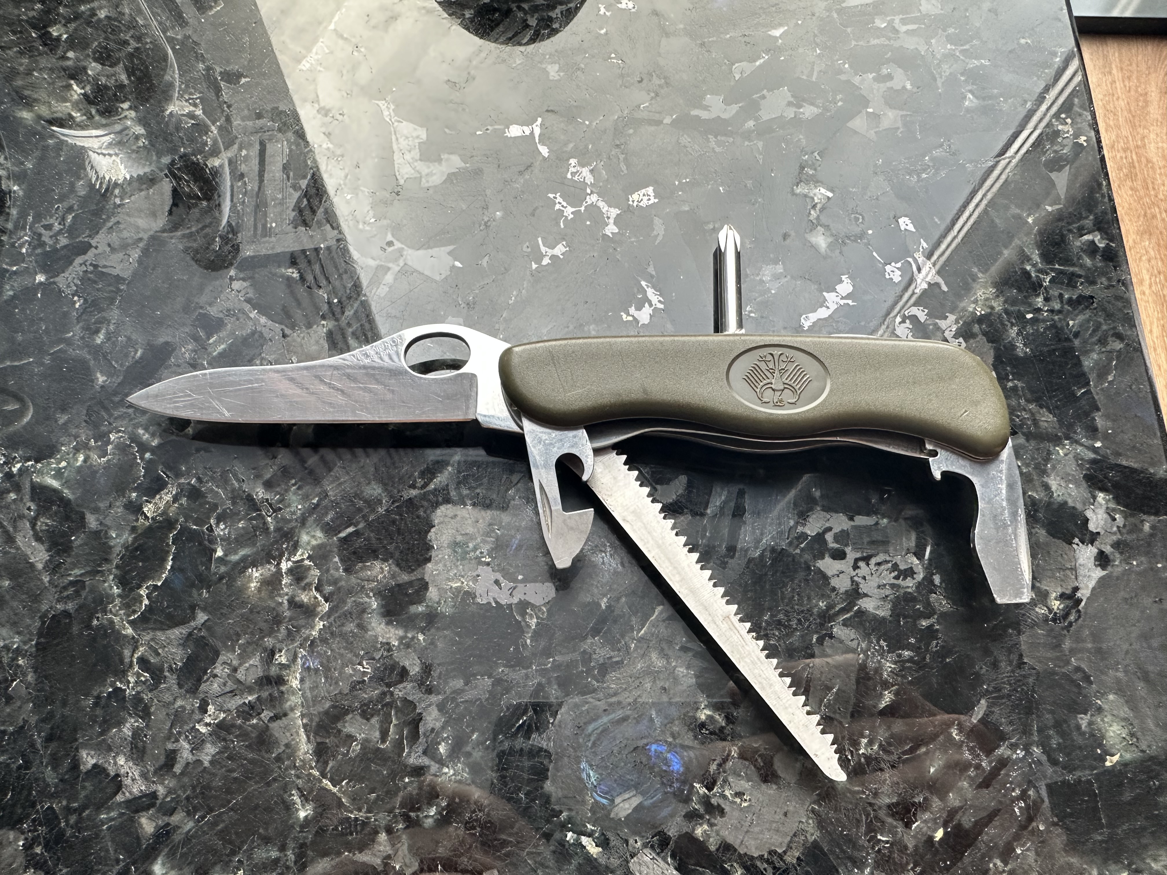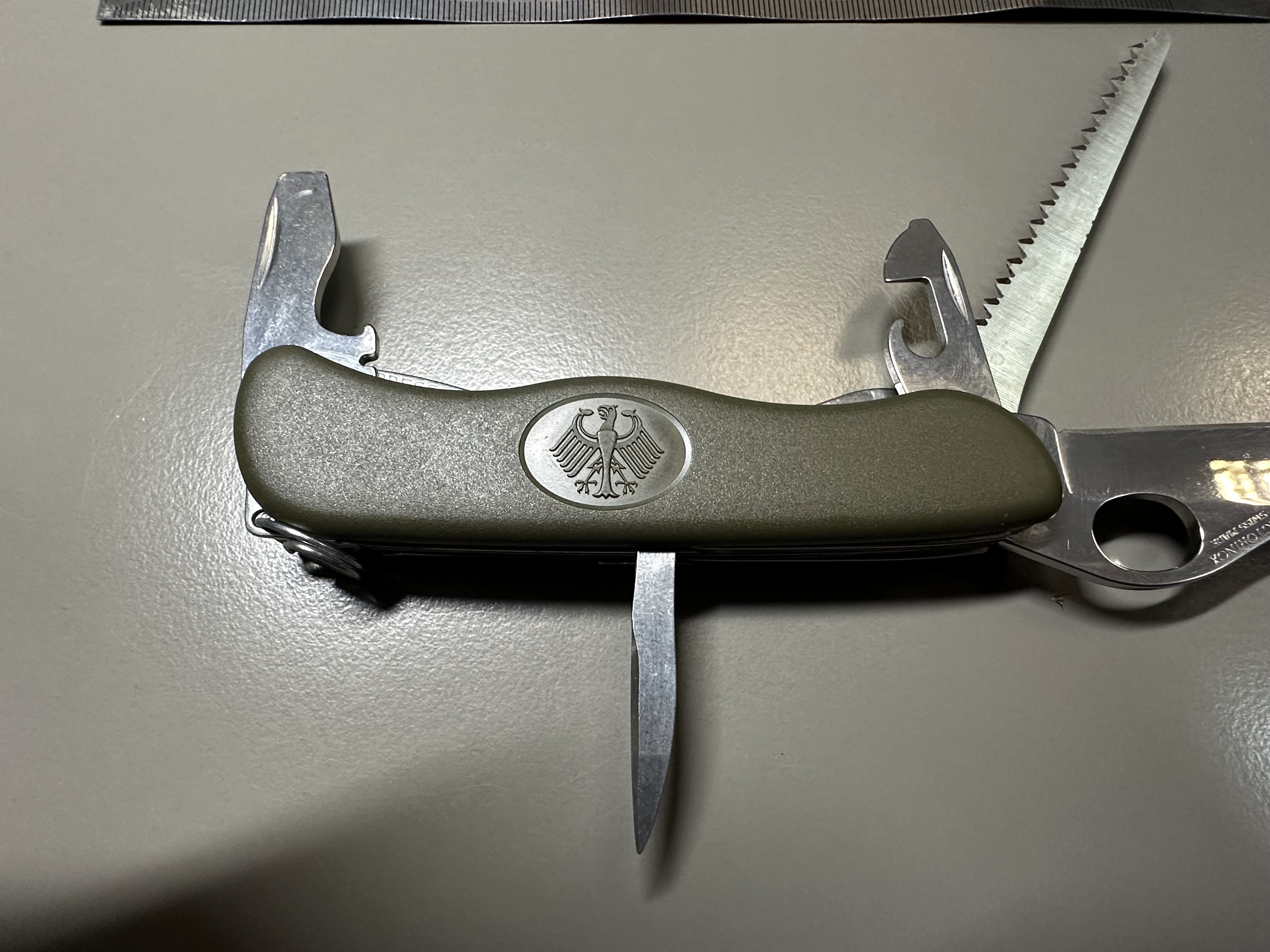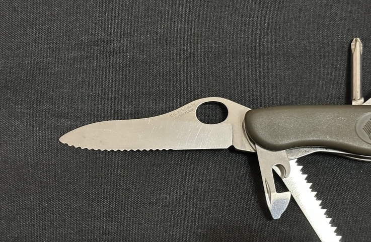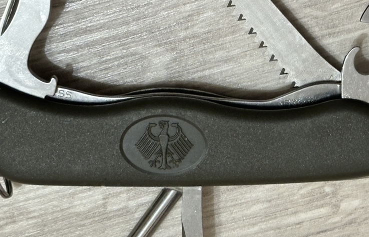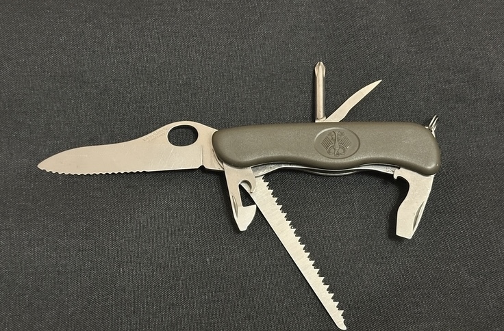 Bw oliv GAK 111, штатний ніж бундесверу, створений компанією Victorinox/Вікторінокс на замовлення армії Бундесверу. Офіційно поставляється до армії Бундесверу з 2003 року. Швейцарський кишенькові ножі від компанії Вікторінокс займають лідируючу позицію у своєму сегменті - EDC (every day carry, ніж на кожен день).Входить в спорядження кожного військовослужбовця Бундесверу. Це не просто ножі - це мультитули, що містять у собі оптимальну кількість необхідних у повсякденному житті інструментів. Лезо легко відкриваються однією рукою і навіть у рукавичках, фіксується у відкритому положенні замком типу лайнер-лок. Всі інструменти зроблені з якісної нержавіючої сталі, і розташовані зручно і ергономічно. Короткі характеристики: Колір: зелений. Рукоятка: матовий нейлон. Розмір: 111 x 34,5 x 18 мм. Вага: близько 120 грам. Особливості: випуск для Бундесверу із гербом. Комплектація ножа: -Великий клинок (довжина 111 мм) з серрейторним заточуванням, з фіксацією та можливістю відкриття однією рукою -Велика плоска викрутка з відкривачкою. -Інструмент для зняття ізоляції. -Мала плоска викрутка з інструментом для відкривання консервів -Пилочка по дереву -Хрестова викрутка -Шило з розгорткою -Кільце для підвісу Ціна 1700грн