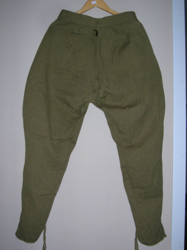 Предложу - Галифе ркка, новые, не стиранные, хранились в сундуке со времен прабабушек, это точно! Одни. Размер 50. Длинна от верха пояса до низа штанины - 105 см., от низа пояса до низа штанины - 96 см, пояс ширина 9 см. По поясу в сложенном состоянии - 42 см. Без канта. Сзади хлястик, отрезной шов по линии колен. пуговицы пришиты все одинаково фабричным способом как бы буквой N, внутри отстрочено все зелеными хб нитками, трущиеся швы (под коленями, шаговые) - обработаны мешковиной, еще есть какая то тряпичная вшитая в шов бирка Р А З М Е Р 50, клейм нет. 7000