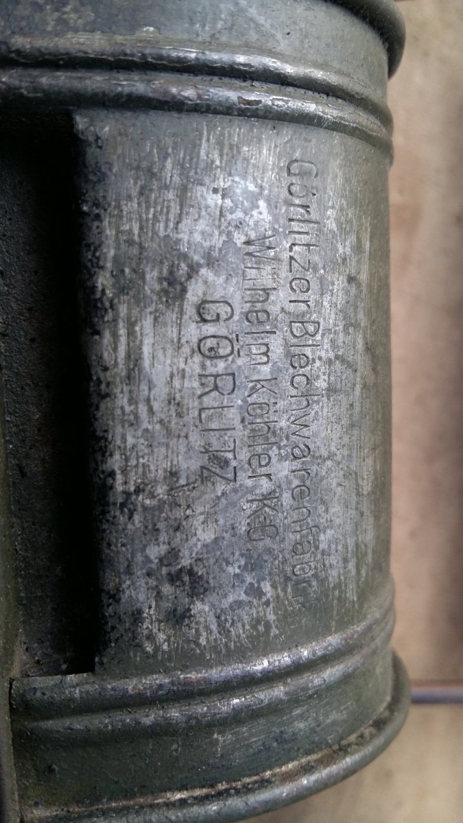По вашей ссылке, Дождь, показана послевоенная лампа бундесвера. Комплектная лампа времён войны стоит 80 у.е., а пустой корпус как у топикстартера с эмблемой - 25 у.е., т.к. нет боковых светофильтров. Бунлеслампа имела 4 вида "начинок" для горения: карбидная, керосиновая, свечная и контейнер с парафином и фитилём.