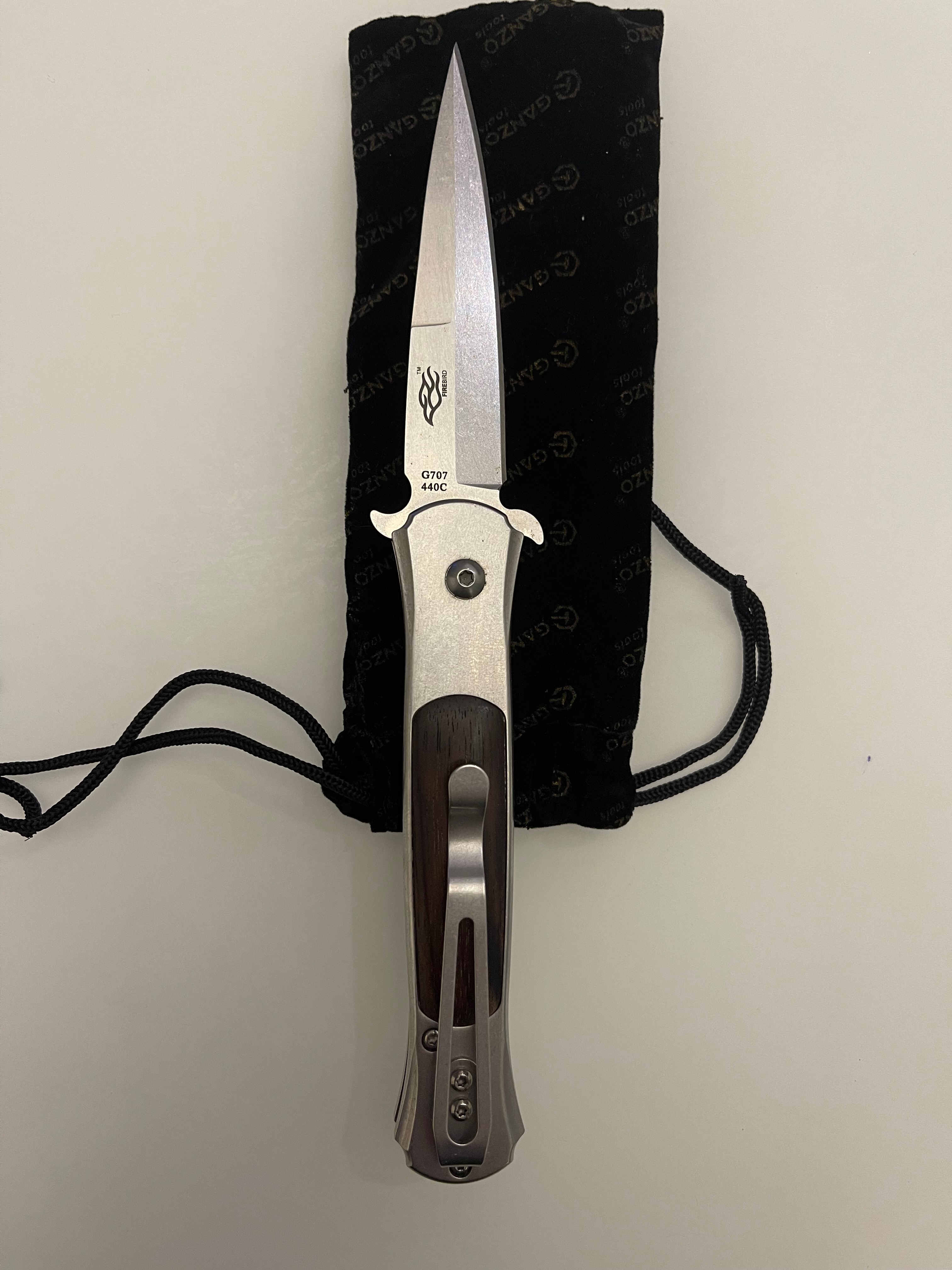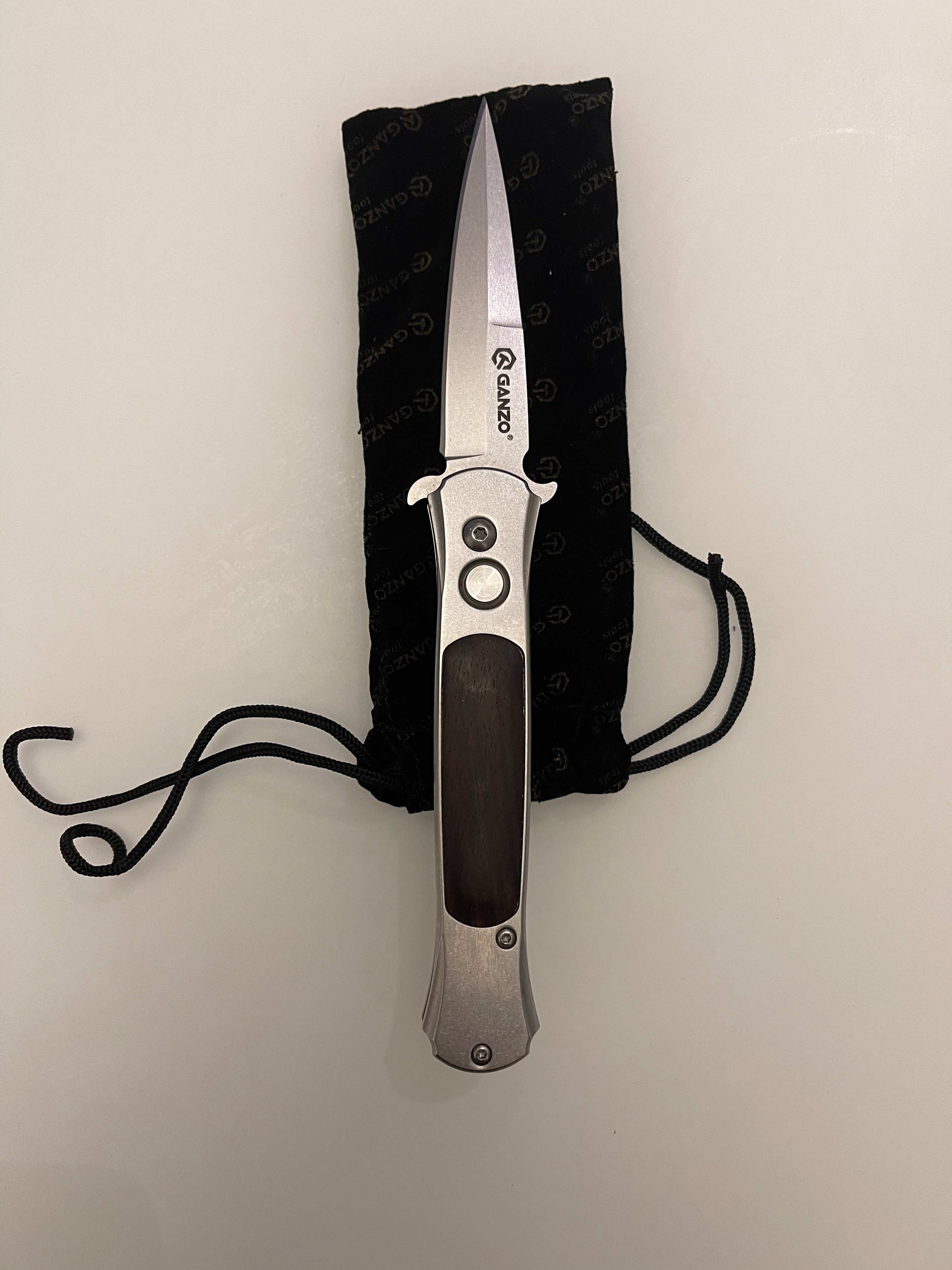 Продам нож Ganzo 707, условно б.у. Состояние на фото. Лезвие имеет прямую полуторную заточку, Автоматический механизм открытия лезвия срабатывает после нажатия на кнопку, расположенную в передней части рукояти. В целях безопасности кнопка практически не выступает над поверхностью рукояти, а это является гарантией того, что механизм не сработает от случайного нажатия. Чтобы спрятать лезвие, следует нажать на кнопку и сложить его в рукоять. Длина клинка - 85 мм. Общая длина - 205 мм. Толщина клинка - 2,7 мм. Материал клинка - 440C нержавеющая сталь твердость 58-60HRC. Материал рукояти - Алюминий Тип замка - Button Lock (автомат) Вес 115 г. Цена - 790 грн.