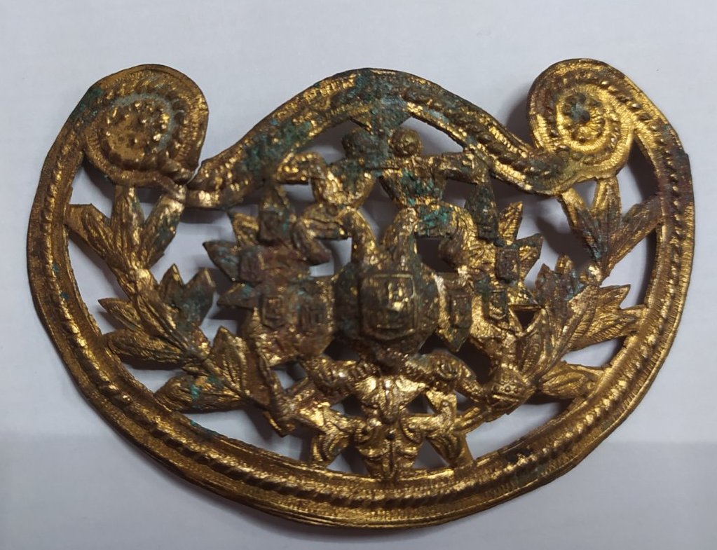 Симпатичный предмет . Полное название будет звучать как : Накладной щиток с гарды шпаги гражданского чиновника Р И с гербом обр 1857 года для шпаги обр 1855 года .