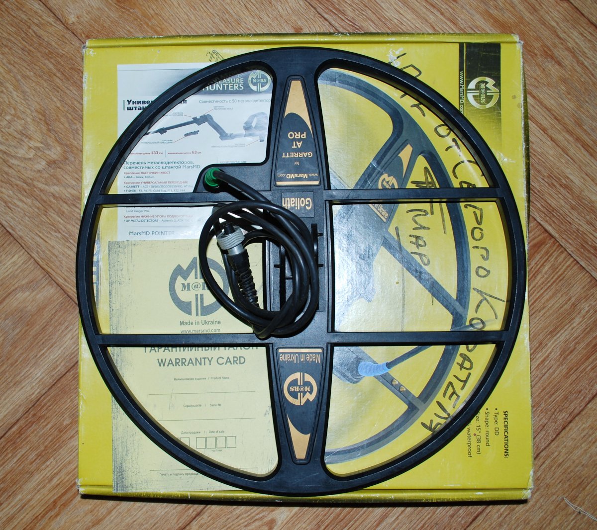 Продам Garrett At Рro с двумя катушками (стандартная и Mars Goliaf) + оригинальный пин Garrett Pro Pointer AT.Дата продажи прибора 21.08.2017г. Прибор работает идеально,без глюков и прочих сюрпризов.По внешнему виду только рабочие потертости и царапины,ничего не поломано.Питание прибора переделано под мощные литиевые батареи и вынесено в подлокотник.В связи с этим заметно улучшился баланс прибора,можно целый день бегать с Голиафом.Заряда батареи хватает на 3 полных дня поиска,больше не пробовали.Гнездо наушников вынесено в батарейный отсек под подлокотником и сделано под большой джек. При желании,кто захочет,может все изменения без особого труда откатить до стандарта,запчасти в комплекте. Катушки тоже работают отлично.Стандартная нуждается в ремонте одного уха.Защит в комплекте нет.Оригинальный пин Garrett Pro Pointer AT тоже рабочий.Гарантии и коробки нет,привезен из США в 2018г. В комплекте все,что на фото. Цена комплекта 11000грн. Прибор находится в г.Бердичев.Отправлю Новой почтой по предоплате на карту Приватбанка или наложенным платежом при условии оплаты стоимости пересылки.