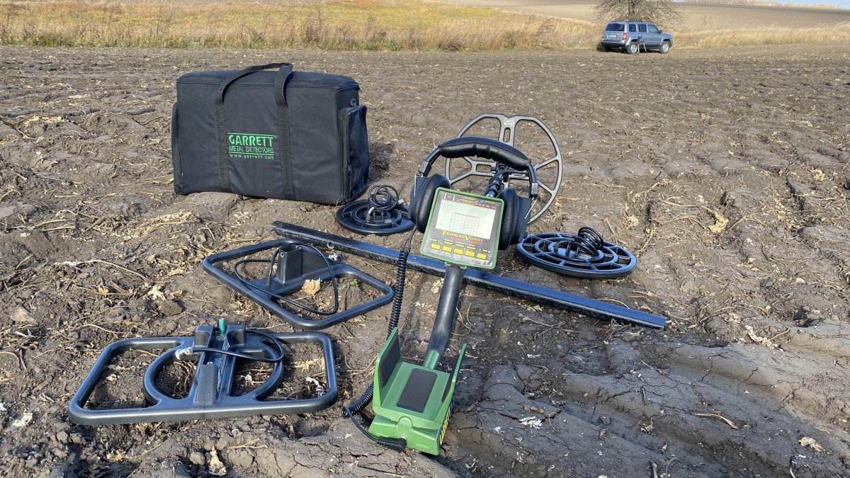Продам свой первый металлодетектор Garrett GTI 2500 Pro с катушками: 1) Моно катушка Garrett 9,5" PROformance Imaging, диаметр 24 см 2) DD катушка Garrett 12,5" PROformance Imaging, диаметр 32 см 3) DD катушка NEL Storm 13"x14", диаметр 33x36 см 4) Увеличитель глубины Garrett Treasure Hound with EagleEye Depth Multiplier. Металлодетектор я покупал в 2008 году в топовом магазине поисковой техники в США за 1175 долларов, подробности можно почитать здесь: https://forum.violity.com/viewtopic.php?t=130809&highlight= Прибору на сегодняшний день - 13 лет, всё работает как часы, вот что значит Америка и первый сорт! Комплект состоит из прибора, кейса для переноски, трёх катушек, увеличителя глубины, наушников и чехлов для глубинной рамки. Состояние катушек: DD катушка Garrett 12,5" PROformance Imaging DD катушка NEL Storm 13"x14" Моно катушка Garrett 9,5" PROformance Imaging У меня это уже третья катушка 9,5", у которой происходит обрыв изоляции на входе гермоввода, поэтому запишем её, как полурабочую. Две другие катушки выбросил раньше из-за такой же проблемы: Увеличитель глубины Garrett Treasure Hound with EagleEye Depth Multiplier покупал б/ушным здесь: https://forum.violity.com/viewtopic.php?t=1288785&highlight= Купил в Киевском магазине D.А.S. комплект родных болтов, выточил под них бронзовые втулки в Краматорске, восстановил сломанные направляющие в Мариуполе и насадка заиграла новыми красками! Подробности восстановления глубинной насадки тут: https://forum.violity.com/viewtopic.php?t=1289427&highlight= Подошвы всех катушек и защиты для них: Общее состояние прибора: В нагрузку даю 8 штук NiMh аккумуляторов Ansmann Digital 2850 mAh. Аккумы долго лежали без дела, поэтому за их здоровье не ручаюсь: