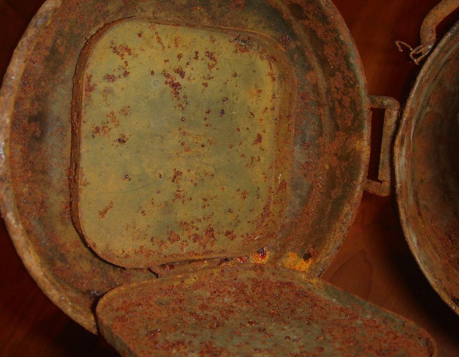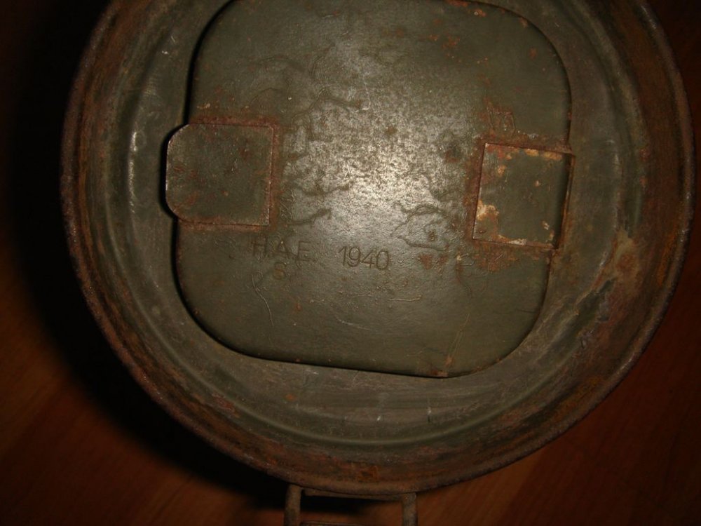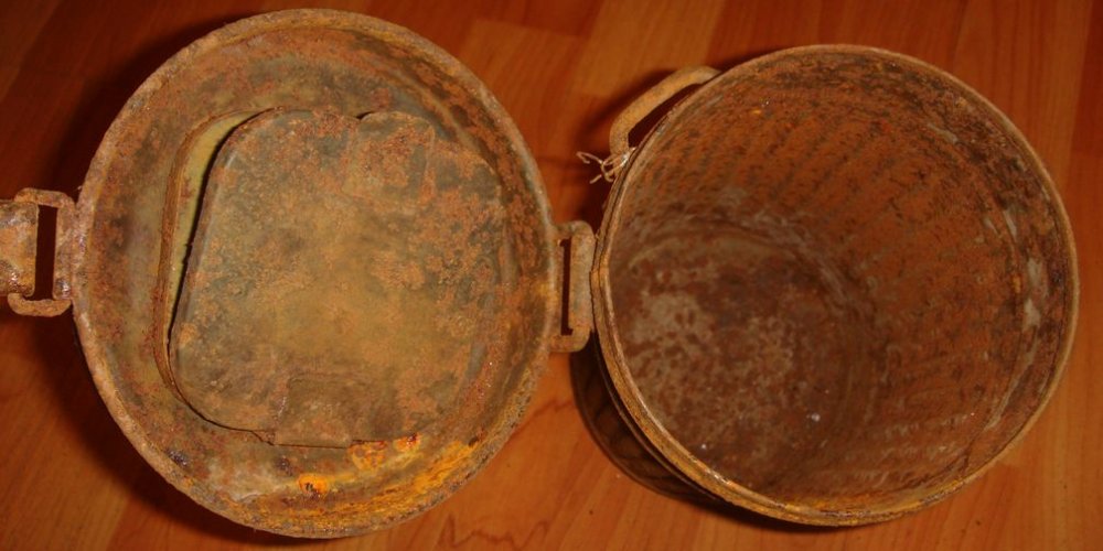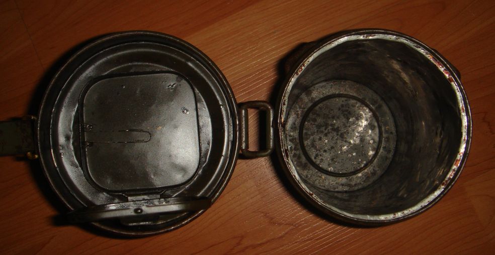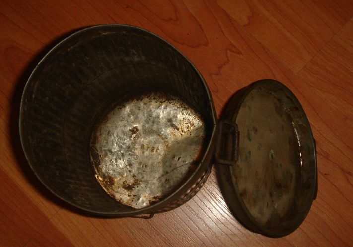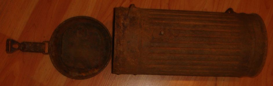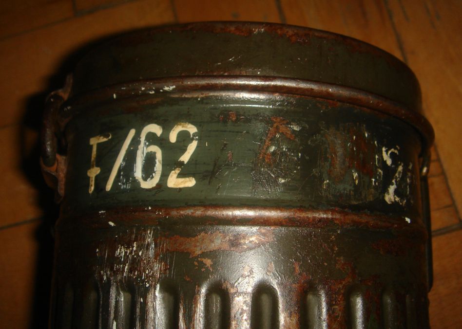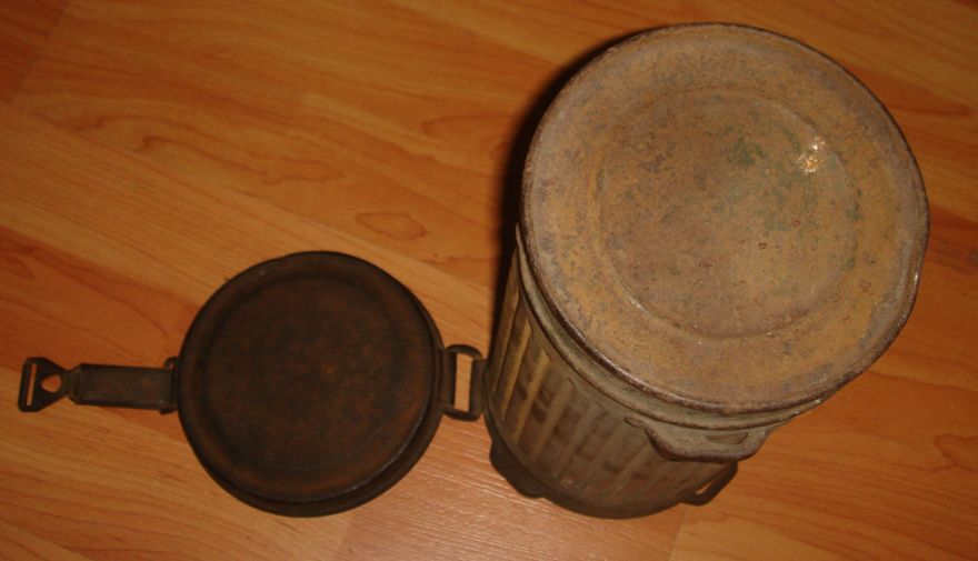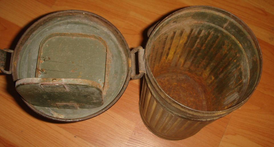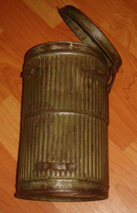 Немецкий противогазный бак обр.1938\45гг.("высокий"). 1939г. выпуска. В хорошем состоянии, много родной краски, без повреждений, целостность корпуса не нарушена. Найден в блиндаже. Цена 500 грн.