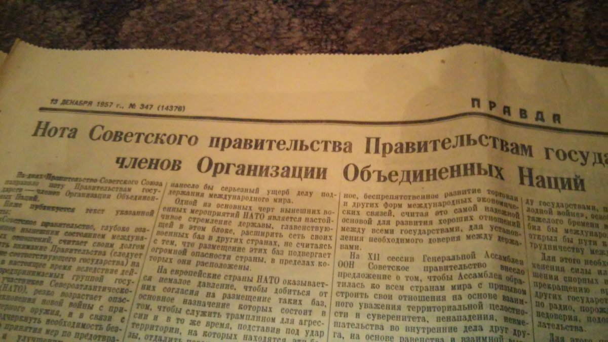 всем доброго лежит дома газетенка за 1957 год издания ну смотрю все статью и публикации этого номера все в точности описует что сейчас в этом мирском мире происходит .походу заплет этот еще в те года начался .