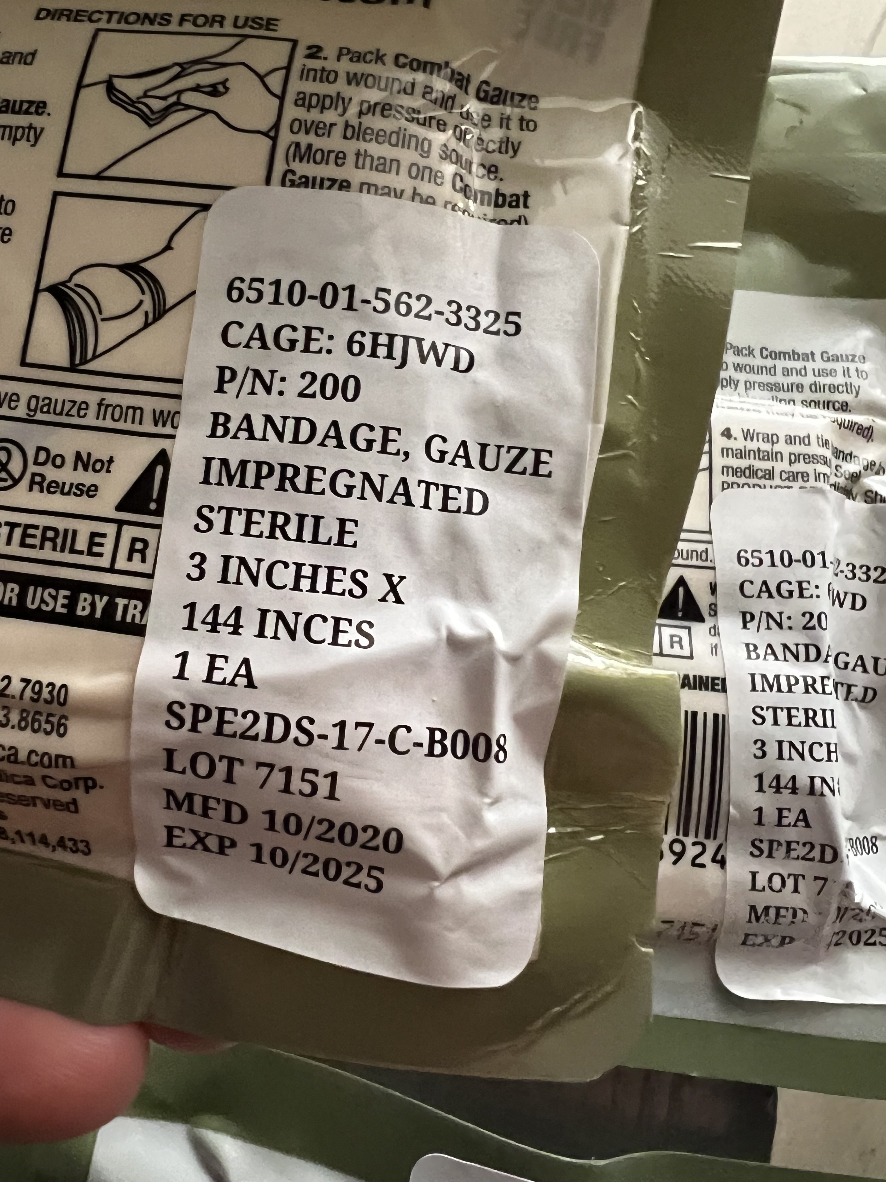 Гемостатичний бинт Quik Clot Combat gauze Z-fold. В наличии 5 шт, срок годности до 10.2025. Цена 900 грн/ шт. Киев или наложка НП.