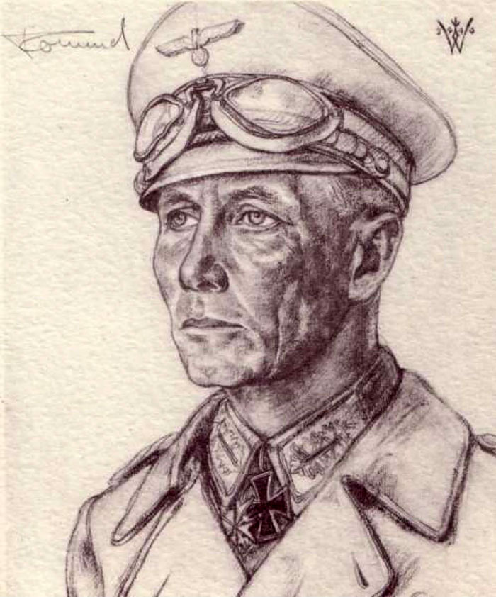 Роммель позирует после присвоения ему итальянцами Большого Креста короны (орден на шее). Из-под него выглядывает орден "За заслуги", полученный за выдающуюся храбрость в 1917 году в боях ПРОТИВ итальянцев и Рыцарский крест с дубовыми листьями.