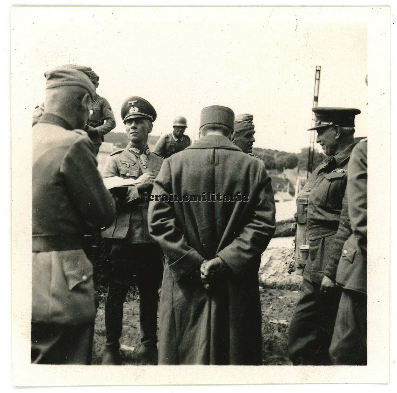 1) General Erwin Rommelals Divisionskommandeur der 7. Panzer-Division bei Verhör von englische Offizier im Raum Fécamp/Étretat, Normandie, Frankreich, 1940 2) General Erwin Rommel als Divisionskommandeur der 7.Pz.Div. mit Offiziere in Frankreich, 1940. 3) General Erwin Rommel als Divisionskommandeur der 7. Panzer-Division bei Besprechung mit Offiziere im Raum Fécamp/Étretat, Normandie, Frankreich, 1940 4) General Erwin Rommel bei R^ K Ordenverleihung Offizier der 7. Panzer-Division, Frankreich, 1940.