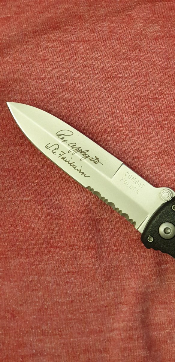 Представляю вашему вниманию нож производства американской компании Gerber Legendary Blades, Inc. Этот нож является складной версией легендарного боевого ножа Applegate-Fairbairn - плодом сотрудничества полковника армии США Рекса Аплгейта и подполковника королевской морской пехоты Великобритании и британской полиции Уильяма Фейрберна. Серийное производство этой модели началось в 1996 году. Данный нож из первой партии, о чём свидетельствует гравировка на клинке. Одним словом, раритет. Идеальный сохран для ножа, которому почти 25 лет. В комплекте чехол пистолетного типа c возможностью вертикального и горизонтального крепления. К явным преимуществам ножей ранних выпусков стоит отнести отличную обработку и подгонку. ТТХ Общая длина: 256мм Длина клинка: 114мм Длина в сложенном состоянии: 142мм Вес: 210г Тип замка: liner lock Форма клинка: spear Тип заточки: полусеррейтор Сталь: 420HC Материал рукоятки: GFN (стеклонаполненный нейлон) Proudly made in USA Цена 200$. Отправка НП за счёт покупателя.