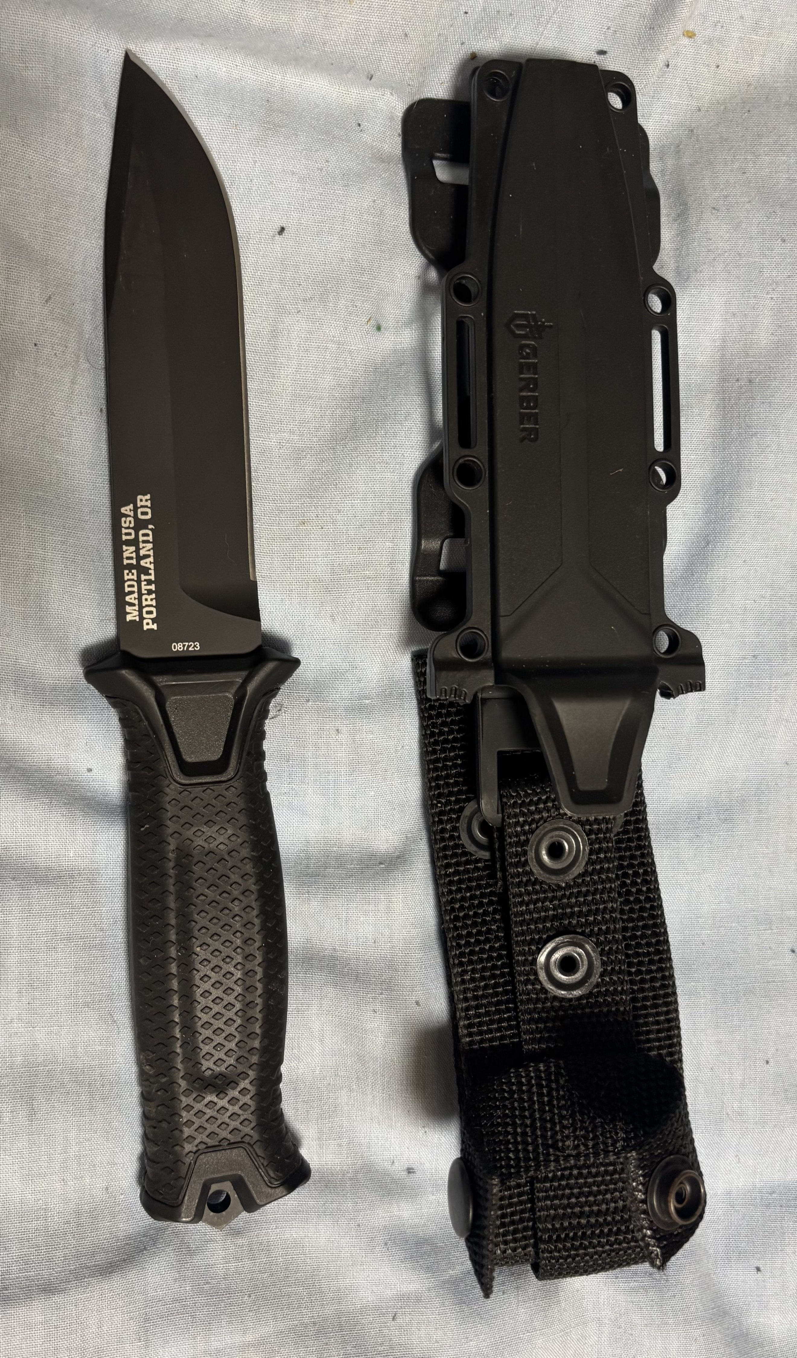 Описание Компания Gerber создает ножи для выживания для американских военных с 1968 года. StrongArm Fixed Blade это модель, которая является своего рода результатом почти 50-летнего опыта в производстве профессиональных режущих инструментов. Тактический нож надежно фиксируется в ножнах. Съемное крепление, которое остается на стропе, позволяя быстро отсоединить ножны. Пластиковая рукоять имеет прорезиненное покрытие, которое не позволяет руке скользить. На тыльной стороне – стеклобой. Общая длина: 248 см Длина клинка: 122 см Толщина клинка: 5 мм Материал рукоятки: FRN Сталь: 420 HC Вес: 205 гр Характеристики Артикул 2000000026350 Код производителя товара (MPN) 31-003654 Бренд Gerber Цвет Черный Тип ножа С фиксированным лезвием Тип заточки Гладкая Страна производства США Состояние товара Новый Наличие В наличии Вес, кг 0.474 Київ, новий оригінал, ціна 3000 грн, 093-215-36-95. Дмитро