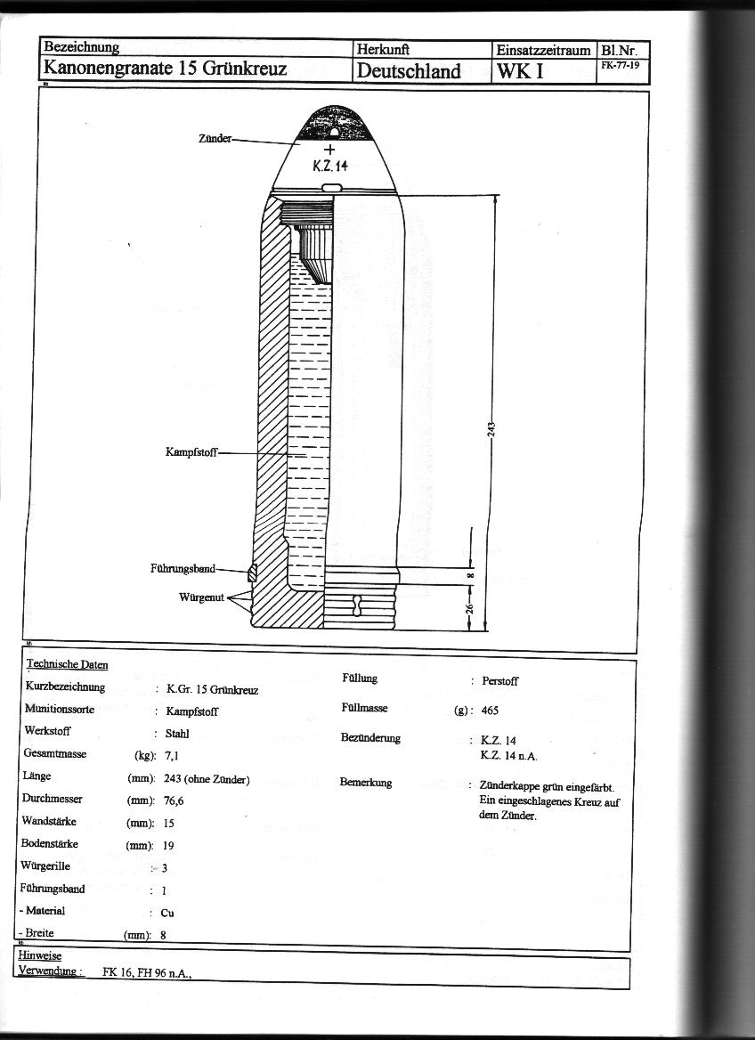 О КАК! А теперь берете "ноги в руки" и ТЩАТЕЛЬНО ЗАМЕРЯЕТЕ находку.!!! Ибо....Ну её нах..."Грюнткрест"...."Дифосген"... P/S Обратите внимание на характерный "след" у Вас на снаряде и на схеме в запоясковой части!!! СРОЧНО мерить!