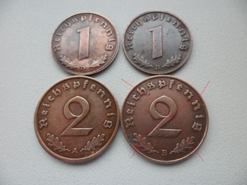 1 пфенниг1937D/1939B и 2 пфеннига1938А - 73 грн + пересыл укр. почтой. Все вопросы и предложения в личку.