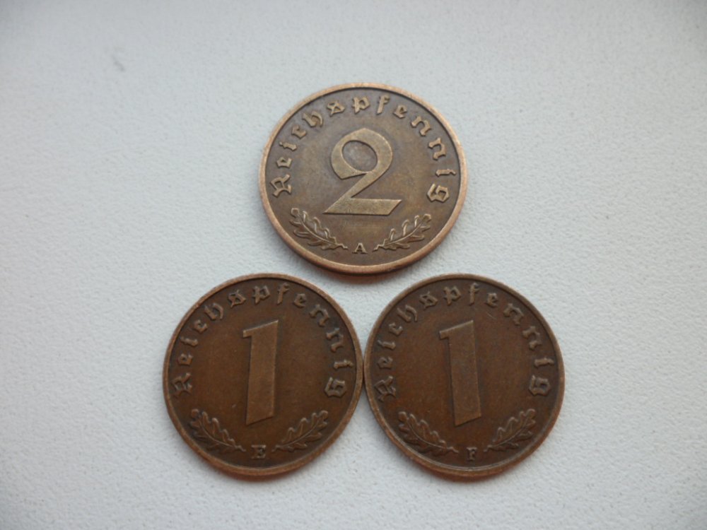 1 пфенниг1937D/1939B и 2 пфеннига1938А - 70 грн + пересыл укр. почтой. Все вопросы и предложения в личку.