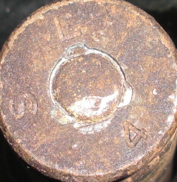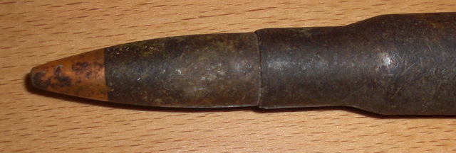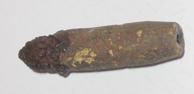 Первые находки 2012 года.Патрон от авиационного пулемёта с бронебойно-зажигательной пулей.Длина 14 см,на донышке маркировка L.S.4.Пуля от к/калиберного пулемёта, стрелянная со следами каналов ствола,гильза от охотничьего ружья .