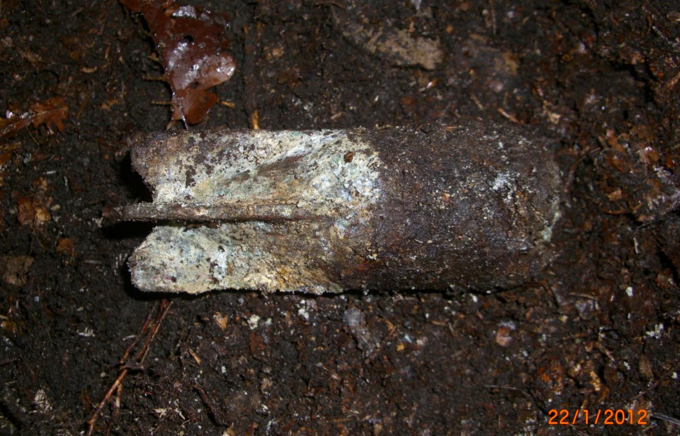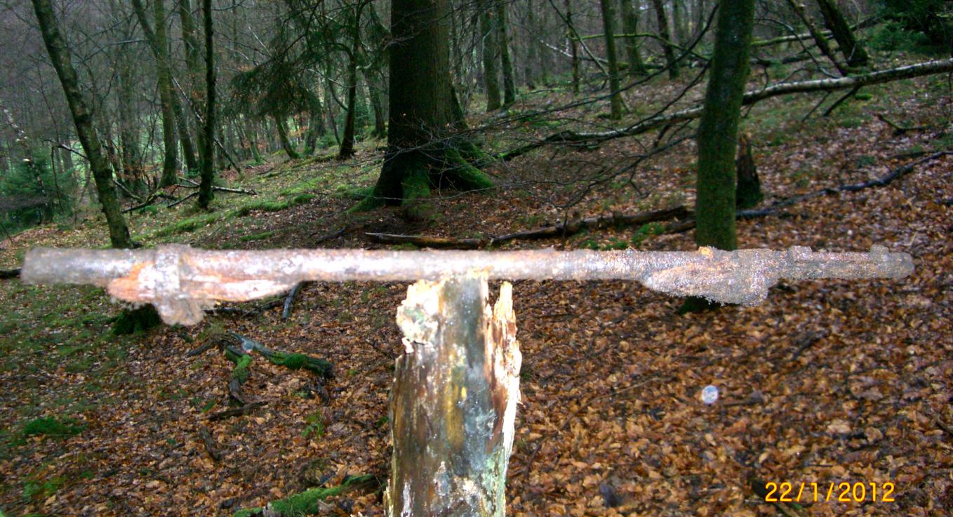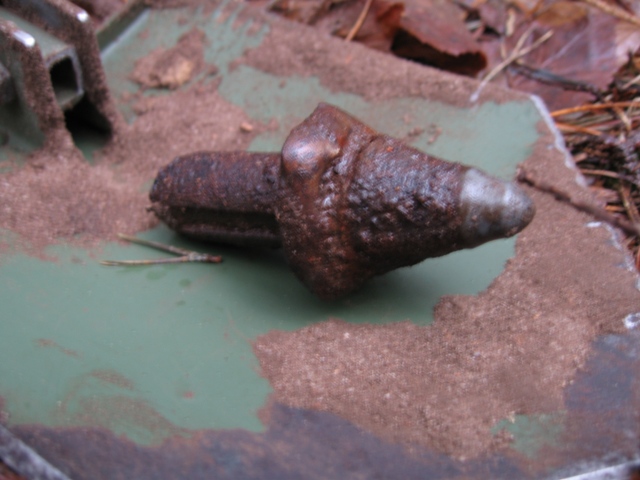 Колышек железный.Выглядит бодро хоть был под толстым слоем моха с песком.Пулек там таких в земле много водно стреляли не думая ,что они потом "звенеть" будут )))