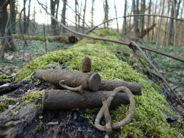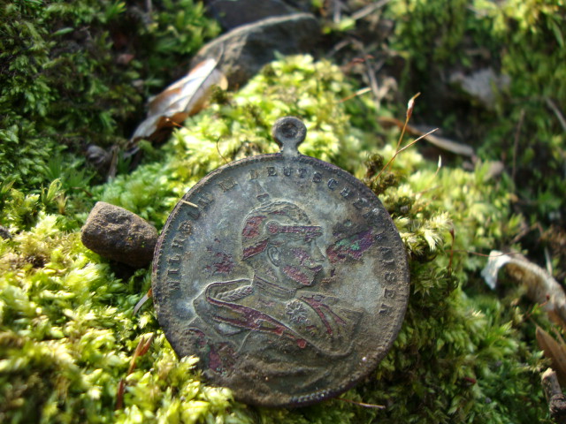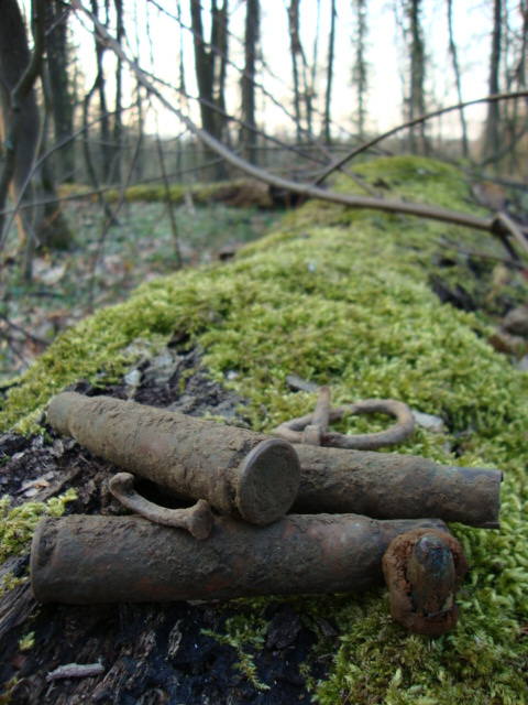 На рассвете,чуть свет отправился по следам..пока собачники храпели...дух леса сжалился)))Лежит себе родненький ждёт..Ну и конечно как тут было не махнуть клюшей на радостях))...компенсацией за переживания оказалась медалька с изображением Вильгельма и немного гильз....