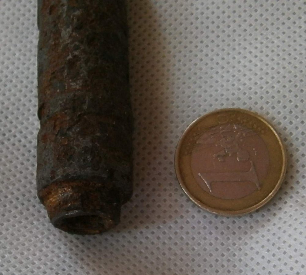 Нет это не пуля, это бронебойный снаряд от авиапушки или от 2см зенитки. Прошедший канал ствола, взаднице донник или трассерная втулка. А может и то и другое вместе. Утопи.