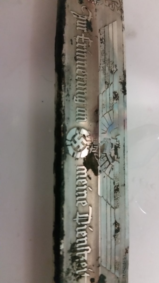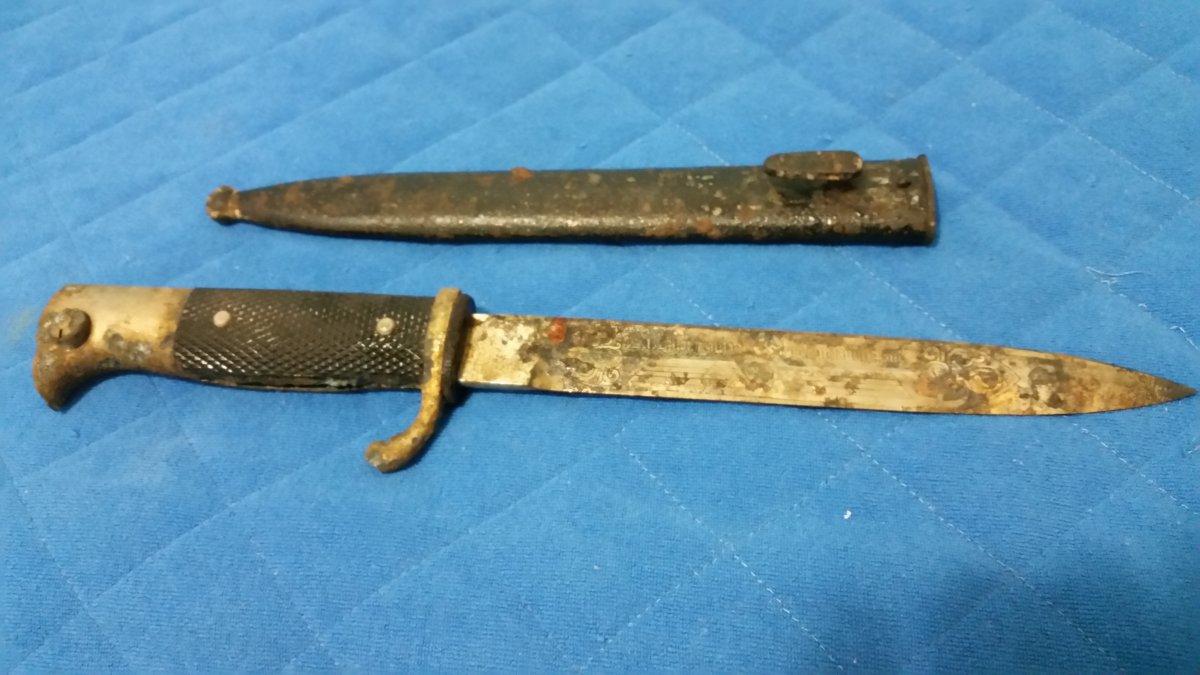 Классный штык, поздравляю. Это наградной, хромированый, с надписью. Если надумаете что то с ним делать, вам могут помочь здесь на форуме, в отделе реставрации.