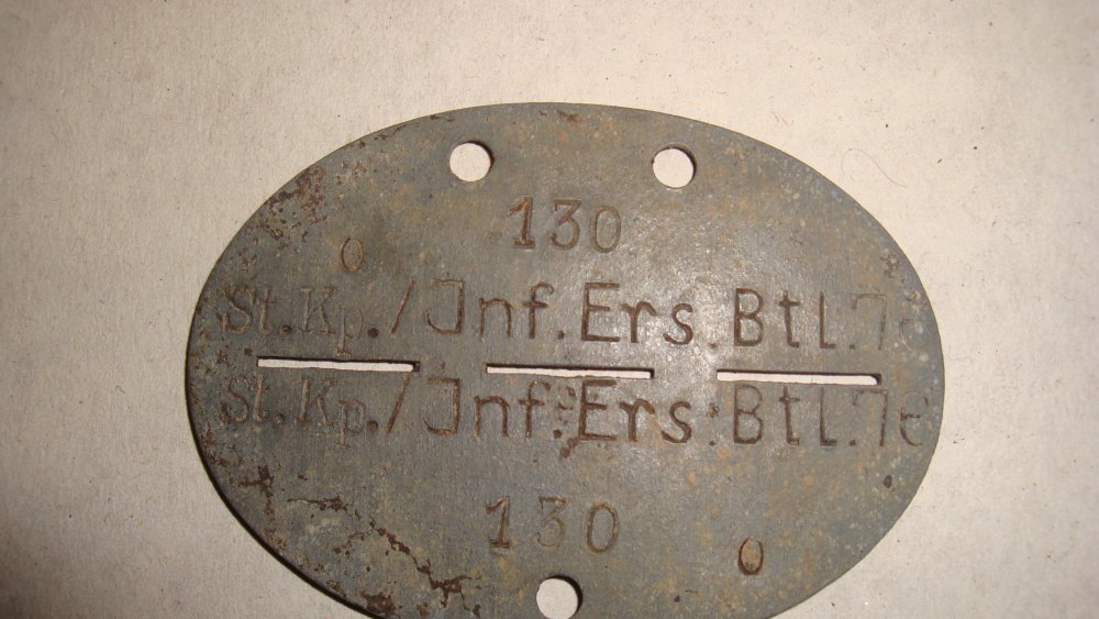 На форуме есть раздел по расшифровке жетонов http://reibert.info/forums/erkennungsmarken.45/ , У Вас на жетоне самая распространённая набивка , кадровая рота 76 батальёна комплектования пехоты , первая группа крови ,130-личный номер. http://www.lexikon-der-wehrmacht.de/Gliederungen/InfErsBat/InfErsBat76-R.htm