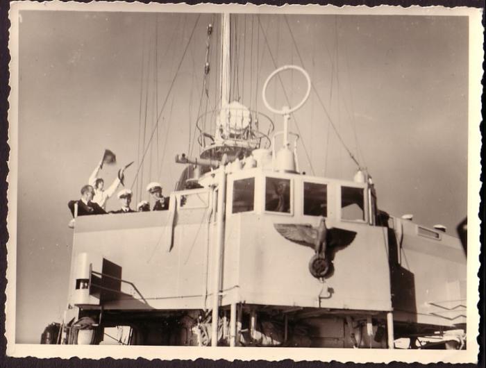 Ответ: Герои Кригсмарине. Отто Кречмер (U-99) после возвращения из похода. Обратите внимание на марку пива.