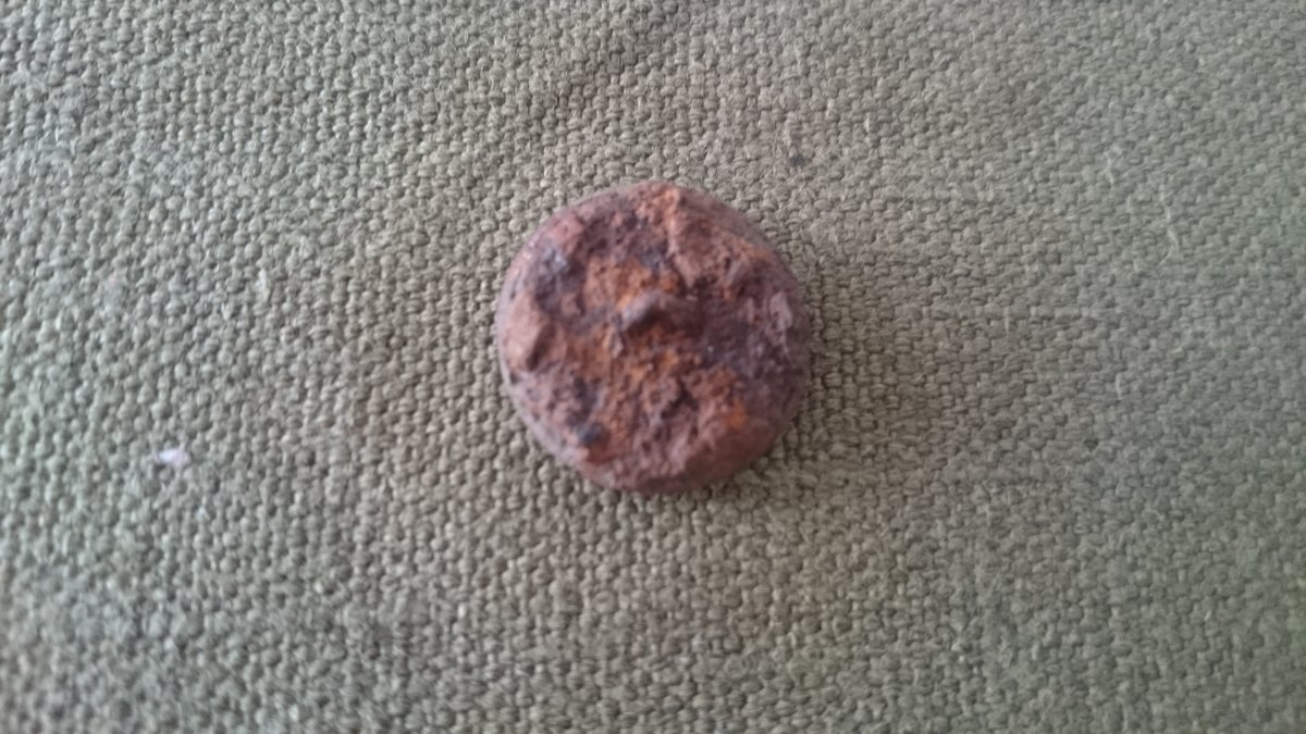 Здрастуйте! Цікавить що це за ґудзик, знайдений в лісі. Одна сторона повністю зіржавіла. Матеріал - мідь. Дякую!