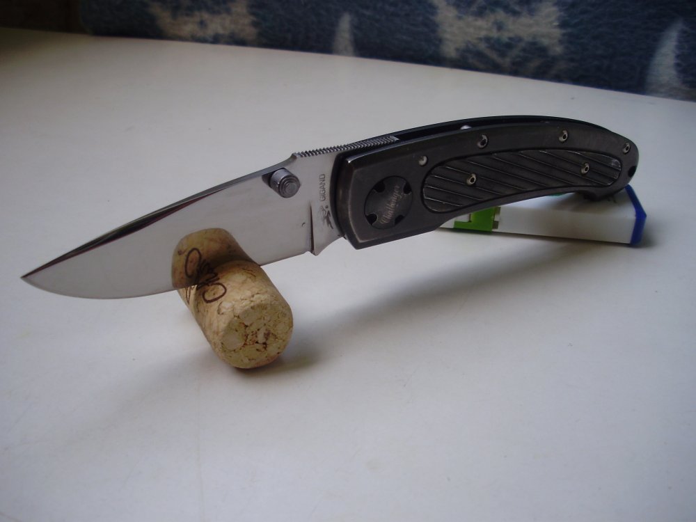 Дизайнер Фред Картер Длина лезвия-80мм толщина-3мм ATS-34,криогенной закалки рукоять-115мм,Al покрытый титаном люфтов нет цена-550грн Нож затачивался один раз,потом только правился.
