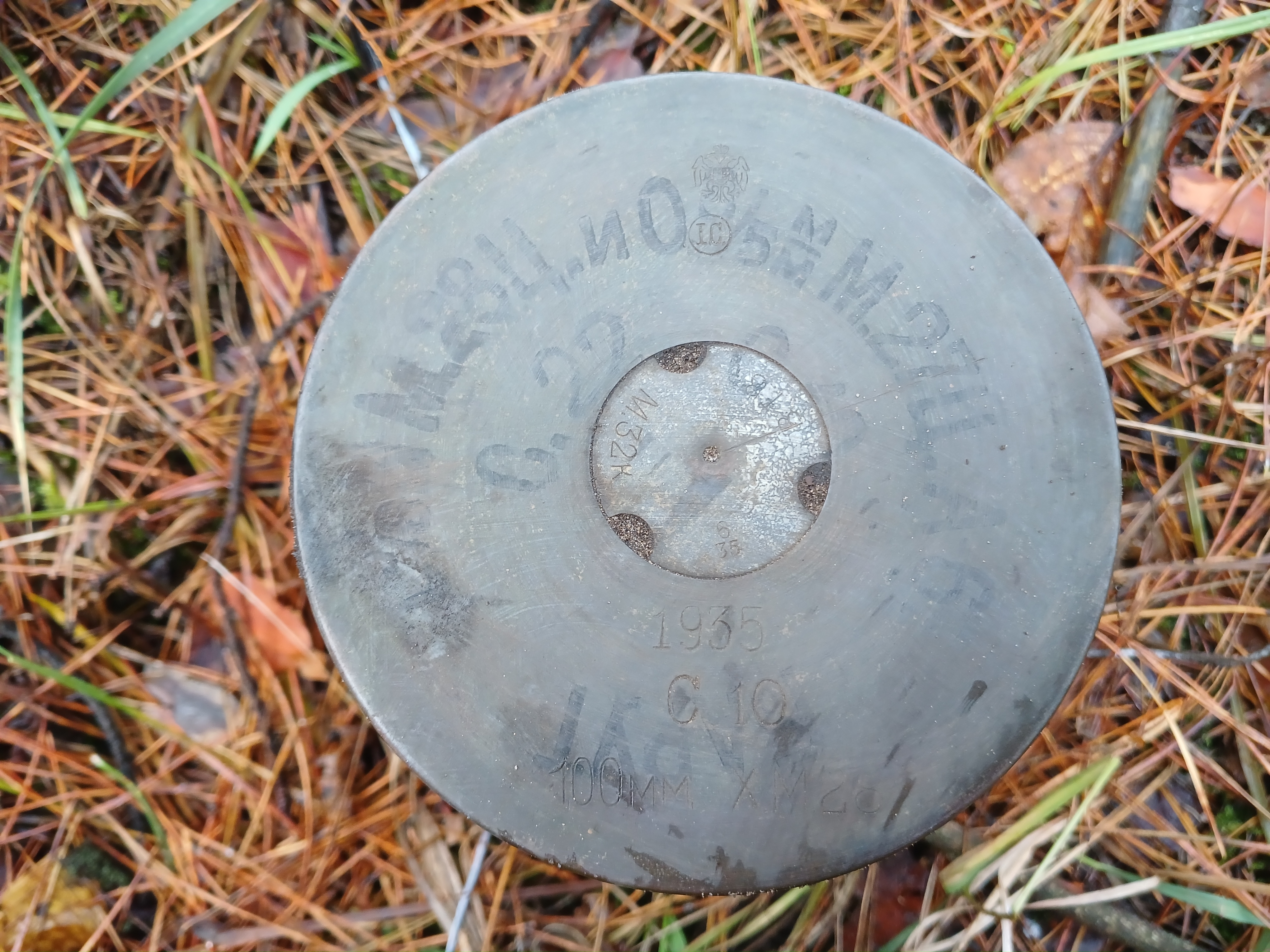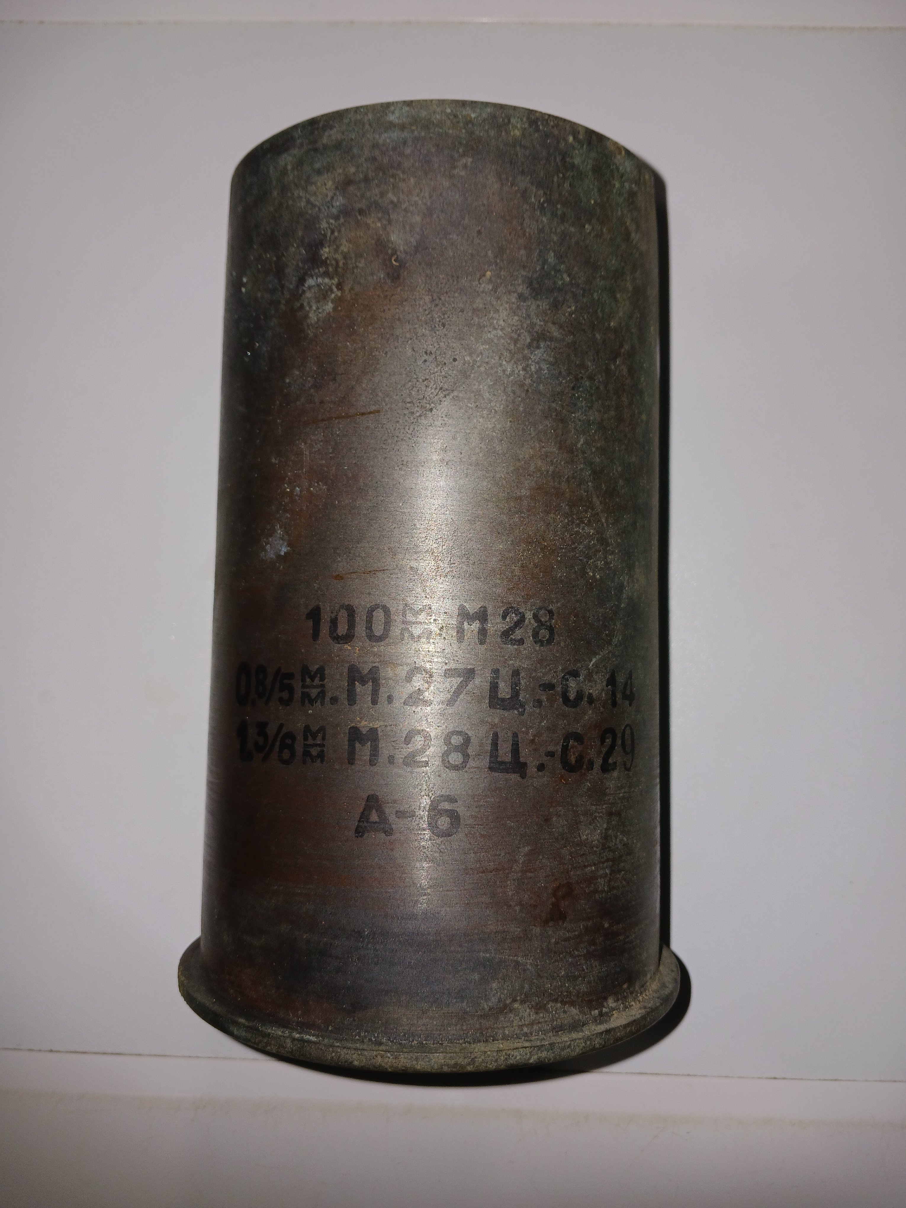 ...довоєнна Югославська (Королiвство С-Х-С) гільза від 100-мм гавбиці (скорше за все - модифікація 10 см гавбиці Шкода М-14 ?? ) https://ru.wikipedia.org/wiki/10_cm_FH_M_14