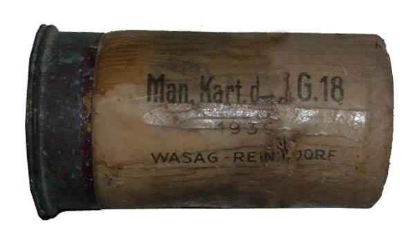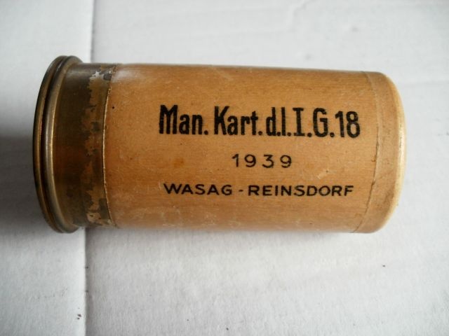 Доброго! Це німець, донце від холостого пострілу (Man. Kart.) до 7.5 cm le.IG 18. Ваш предмет випуску до 1940 року, після цього використовувалося маркування „dnf“ (Rheinisch-Westf.-Sprengstoff A.G.) Холостий постріл використовувався із спеціальним сталевим адаптером. З повагою,