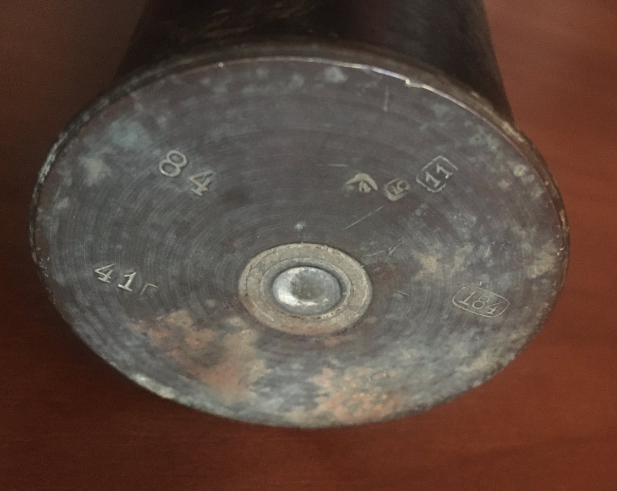 так он не стрелянный На макет уже не пойдёт. Режьте на карандашницу,щлифонёте,и грн 70 потянет. П.С. капсуль либо прожарить,либо выпресовать.