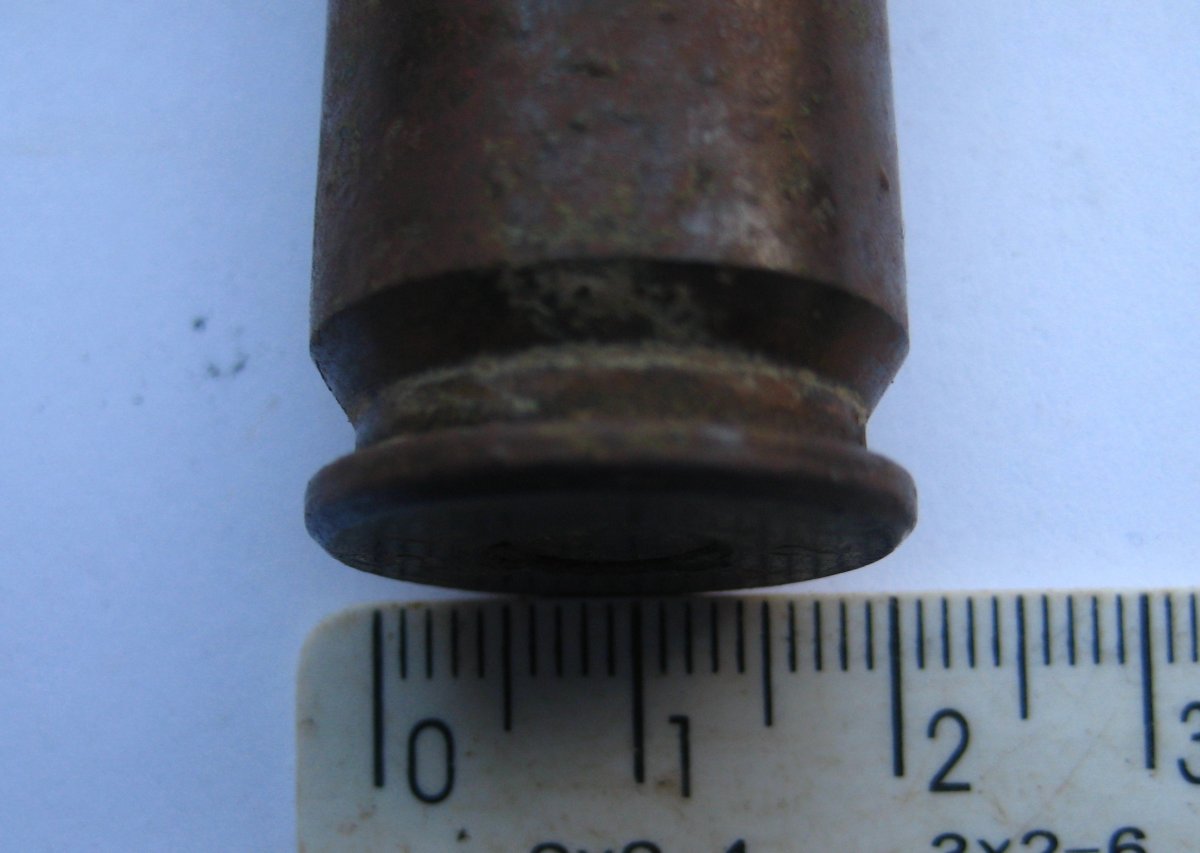 Здравствуйте. На копе в одной ямке попалось несколько таких гильз, пуля от этой находится внутри гильзы, подскажите пожалуйста от какого оружия. Заранее спасибо ответившим.