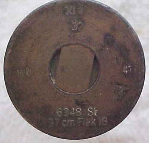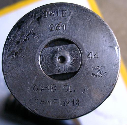 Гильза 37х265B - Индекс на ней "6348" говорит от том, что она к выстрелам зенитки 3,7сm Flak18 или -36. P/S На фото ниже гильза стальная, но смысл не меняется!