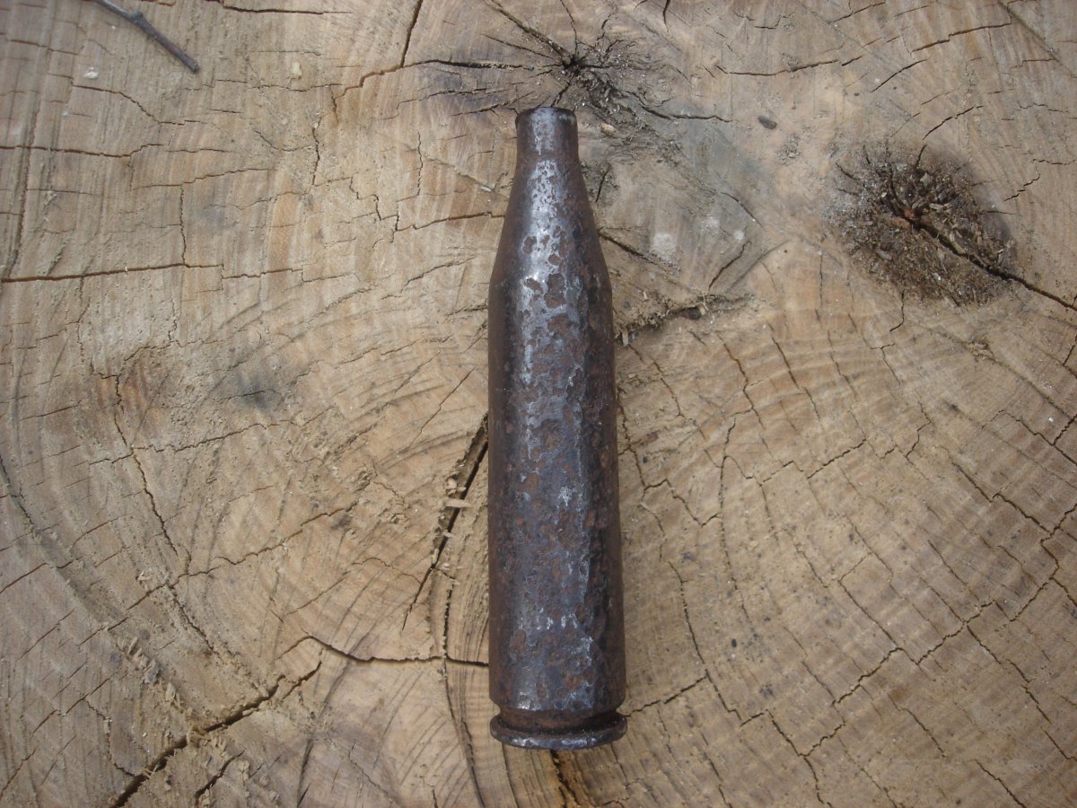 Здравствуйте. Сегодня выскочила такая гильза,такую вижу впервые. Пожалуйста помогите определить по этим фото. Точные размеры дам позже,если нужно.
