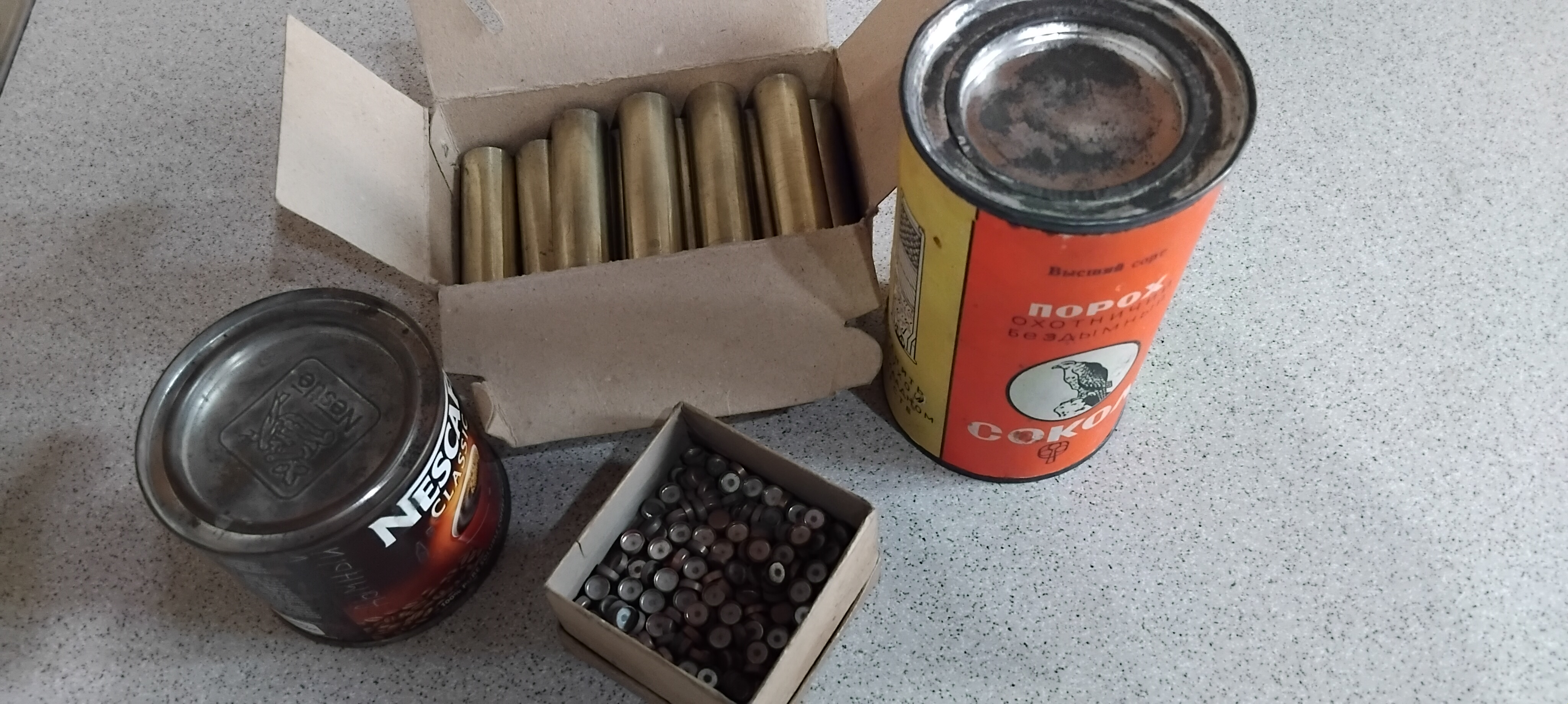 Продам одним лотом всё что на фото. Досталось случаем , тема не моя. Капсюля - 210 шт. В банке из под кофе дымный порох. Цена -1200 грн. за всё. Раздельной продажи нет. П.Б. >>>Новая почта.