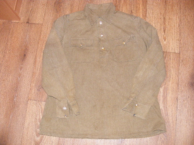 Спекулянт- это чисто совковый ярлык.Я знаю людей кто брал на Куреневке гимнастерки за 50 гр.Только не у всех есть такая возможность,покупать на Куреневке,да и нет там такого магаза где пришел и взял что надо,а то что цена на новодельные гимнастерки бывает по сотке баков,то зайдите на Нивки и увидите расклад.Я это не к тому что моя такой цены немалой,а прежде всего выяснял ее происхождение,мне она может и вовсе подарком досталась,это не значит что она дармовая или бесценная.На каждую вещь есть своя цена и свой покупатель.Меня она прежде всего заинтересовала как не частая и интересная ,с воротом и погонами,отпороть шлевки и на 41 покатит,пришил погон на 43 пойдет.Да и размер приятный.С уважением.