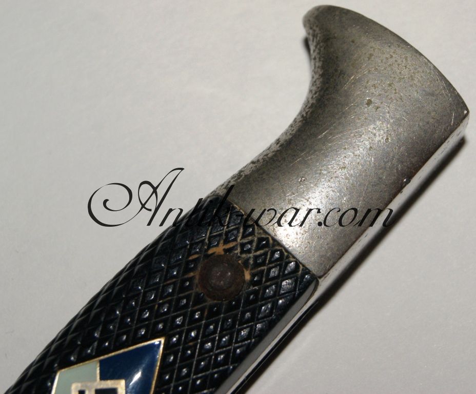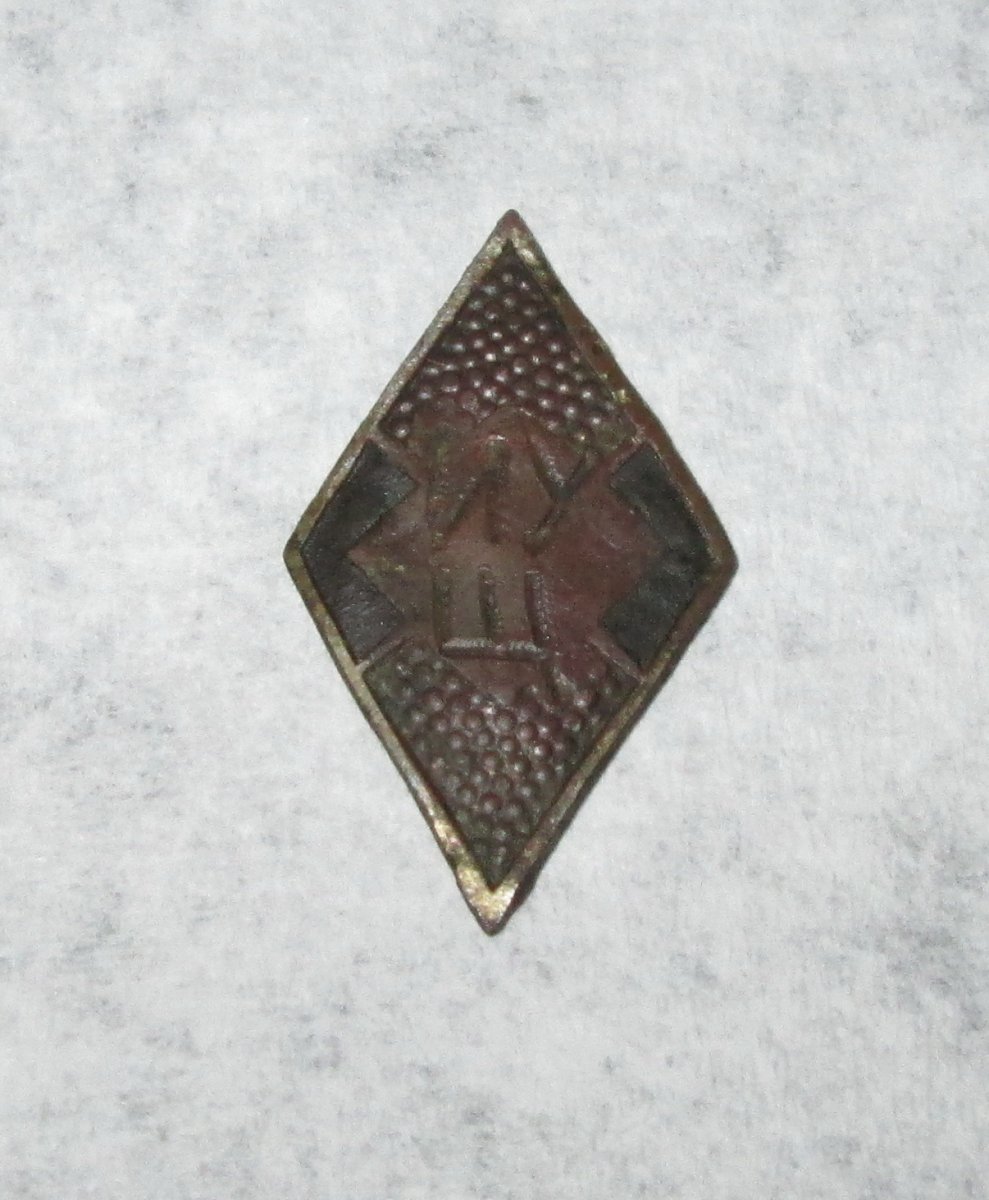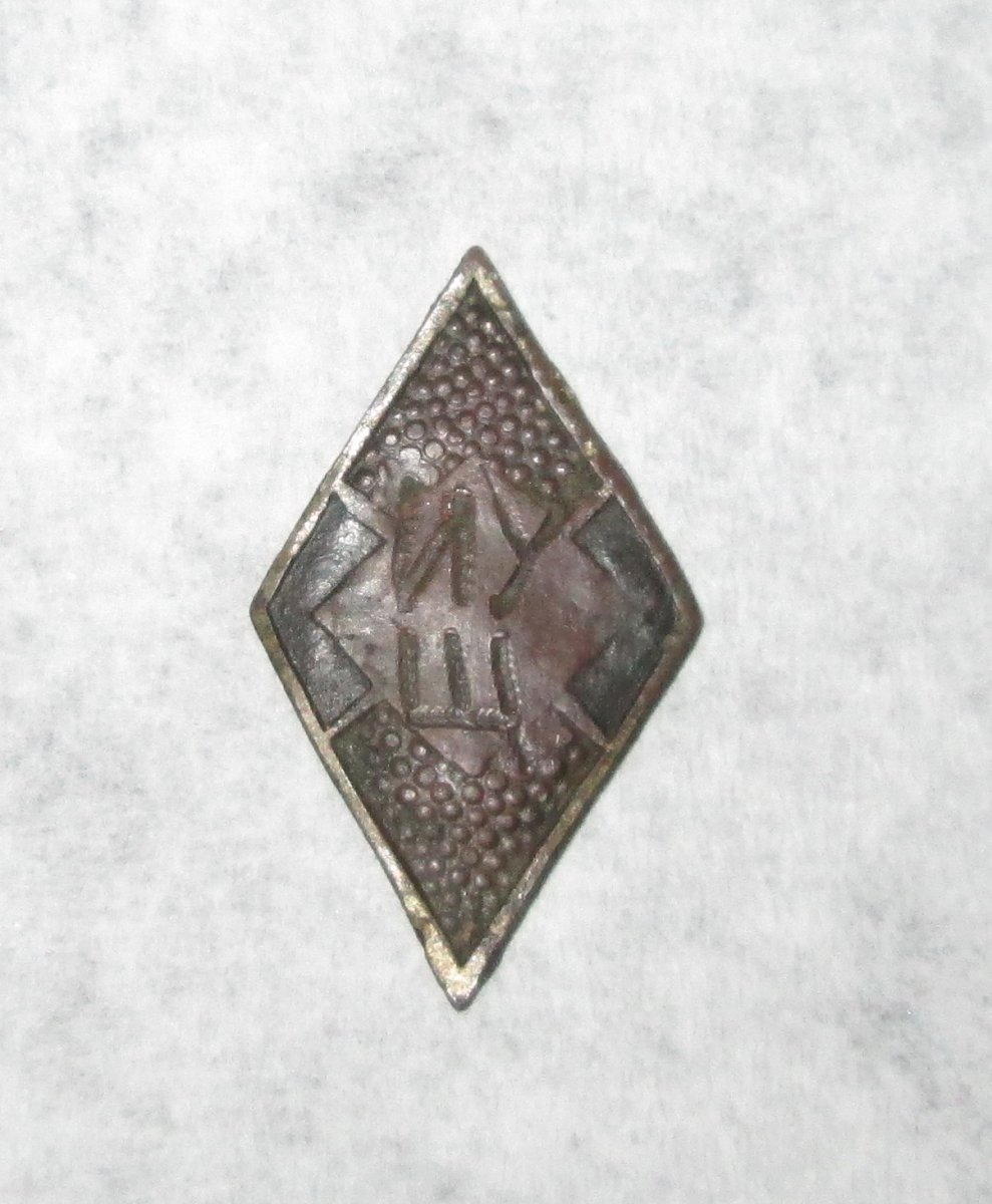 Здравствуйте! Вот был когда-то Гитлерюгенд,теперь "ИУЩ" . Это был значок или вставка в накладку ножа. Размеры по углам 26мм х 15мм,по сторонам явно выраженный синий цвет.