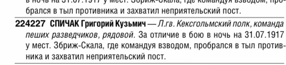 1009610 СПИЧАК Григорий Кузьмич — Л.гв. Кексгольмский полк,