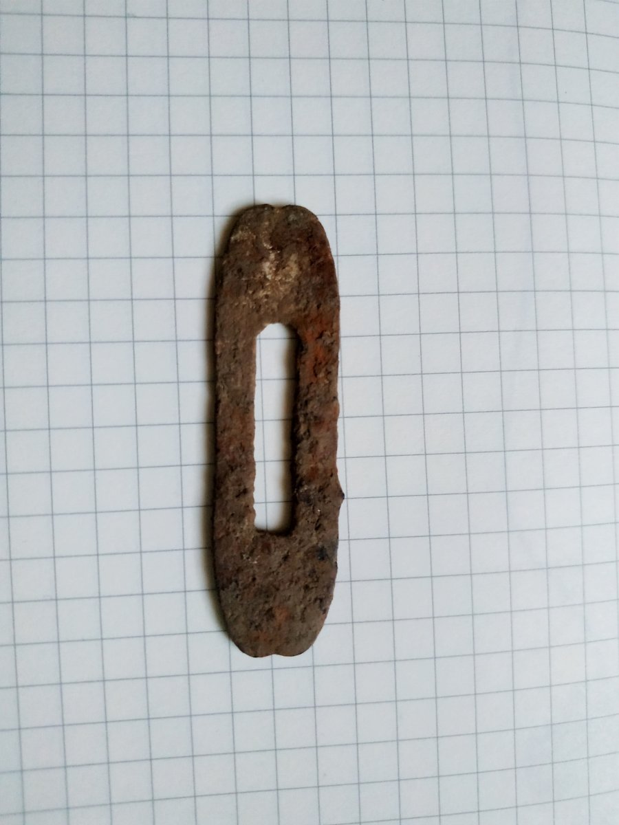 Согласен, больше похоже на гарду. Да и размер 5,5х3 см. примерно (если клетка 0,5) подходящий для гарды. Размеров глазка короче чем 100-120 мм. пока не видел. Да и отверстия должны быть...