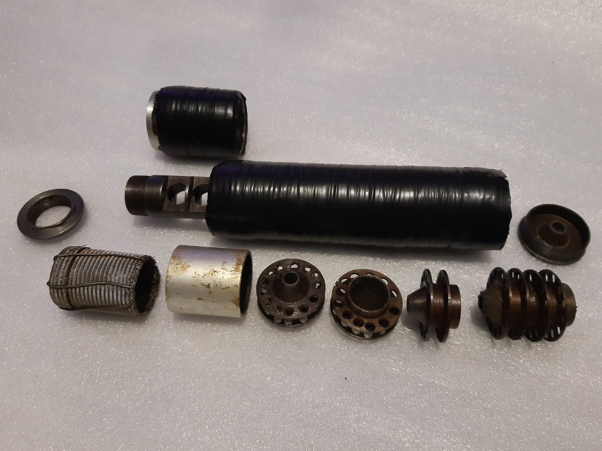Добрый день. Использовал nielsen, тихон и кулибинский, заказал маус придет испытаю расскажу. Тихон да отсюда только в ихнем каталоге такого уже нет наверно устарел длина 300 диаметр 40 с заходом на ствол на 200мм титановый, сварной, система типа рефпекс на пять камер, задняя крышка на резьбе,кстати довольно удобно,весь мусор собирается возле крышки раз в год открутил компрессором продул вот и вся чистка. С ув.