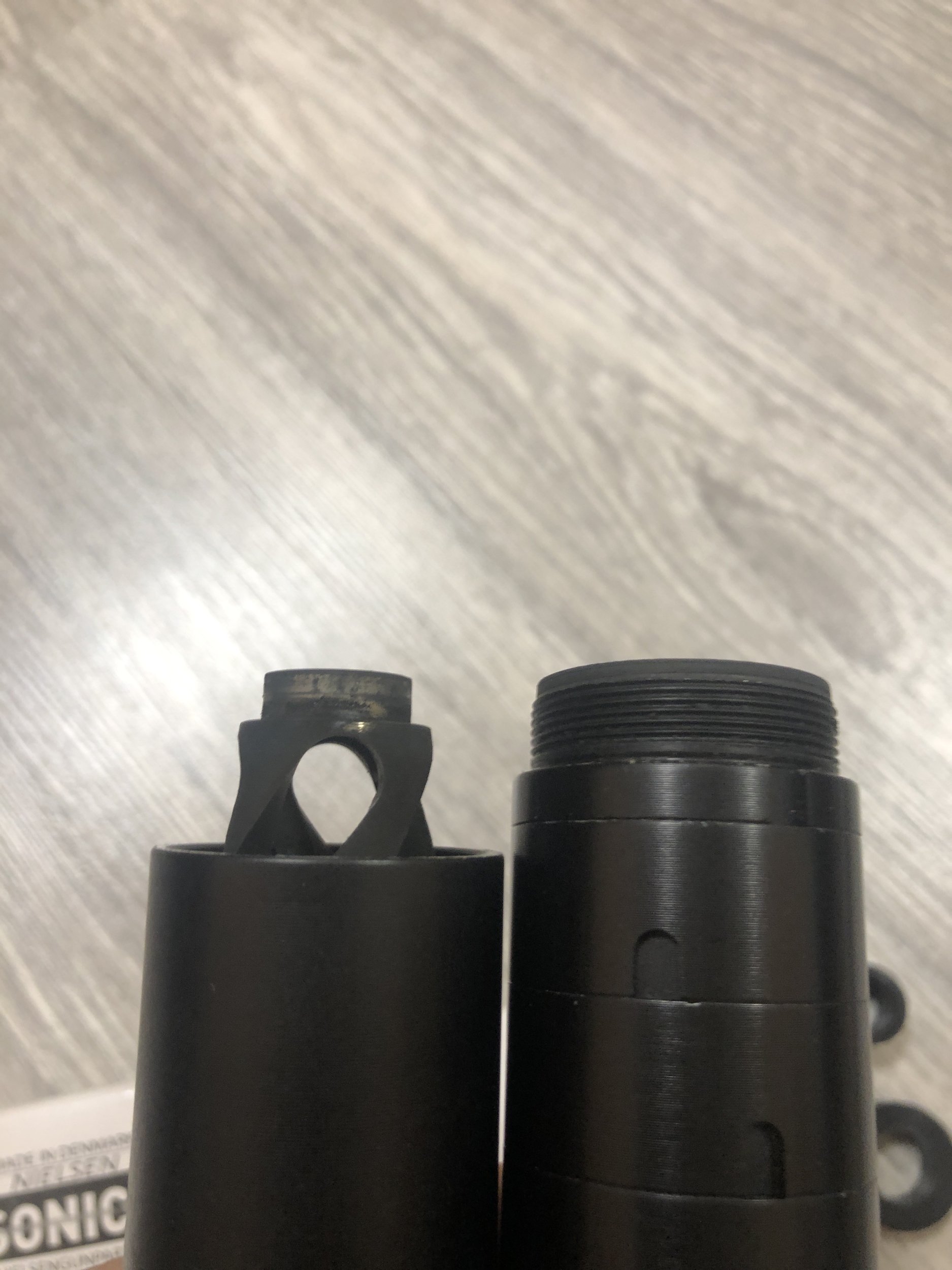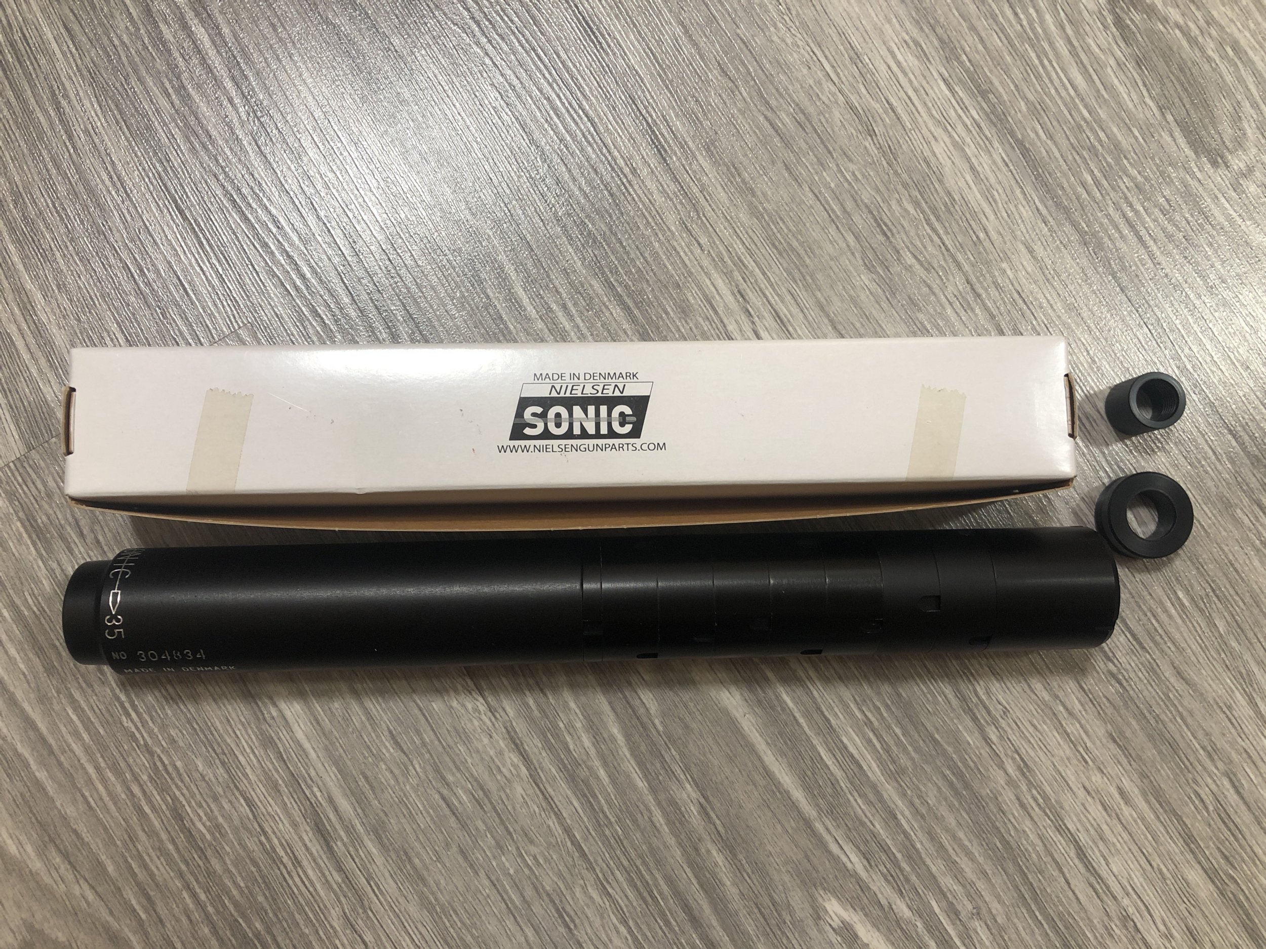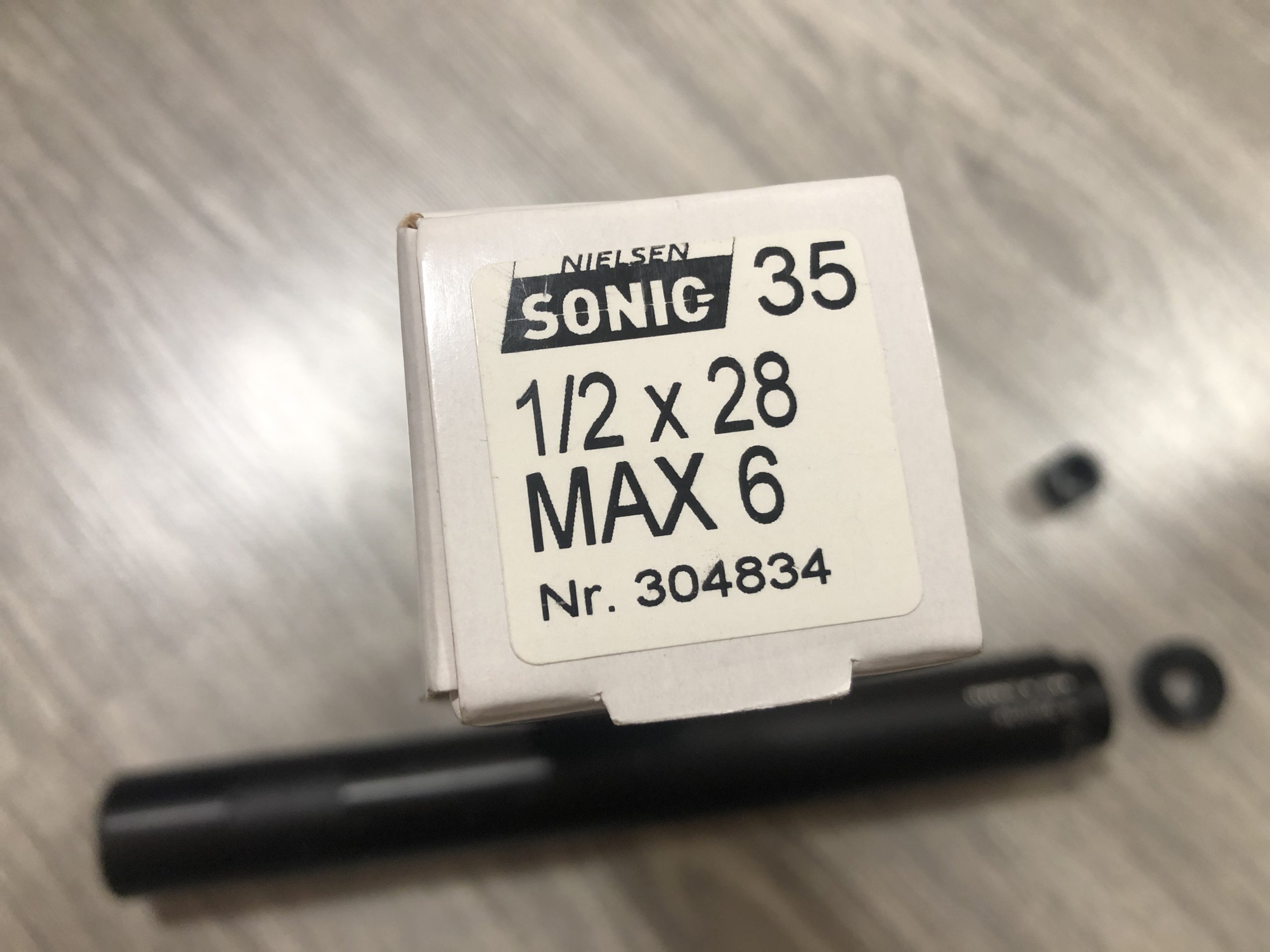 Продам глушитель NIELSEN SONIC 35 COMPACT 1/2" 28 MAX 6 Разборной. Настрел ровно 30 выстрелов для пристрелки (в 2017 году))) ) С тех пор лежал как резерв в связи с переходом на другую модель. На войне не был. Состояние можно оценить на фото. Дульная резьба 1/2"-28 Под 223 Rem, 5,56х45 Дополнительно прилагается 2 дополнительные камеры, бонусом. Изготовитель: Дания На фото нечищен. В текущем состоянии вычищен, все резьбовые соединения обработаны медной смазкой держащей температуру до 1100•с воизбежание спекания резьб модулей. Цена 7000 грн. Отправка только НП.