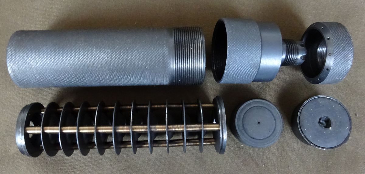 Разборной ! С обтюратором ! ЕСТЬ ФИКСАЦИЯ ПОД ЗАЩЁЛКУ ! Это очень важно, чтобы ИСКЛЮЧИТЬ РАСКРУЧИВАНИЕ глушителя и как следствие - касание пулей внутренних поверхностей. Корпус и начинка стальные.