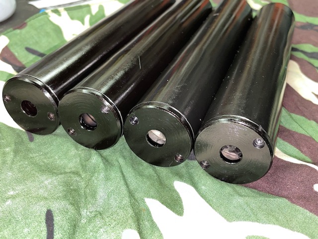 Шановні Камради Пропонується лінійка принципово нового підходу до ПБС - Глушників. Іменно Глушників, так як в даних конструктивах використовуються обтюратори. Як штатний армійський - 40 мм, так і 30 мм. Перевага при виробництві надавалася компактності , надійності та вазі. Як бачимо - вага та розміри набагато меньші звичайного ПБС-1, вага якого 625 грамм !!!. Принцип роботи - можно викоритстовувати як ПС та і УС шляхом перестановки обтюратора в конструкції. Матеріал титан та авіаційний алюміній. Термопокриття. ] Вартість в конкретних випадках в особисті повідомлення.