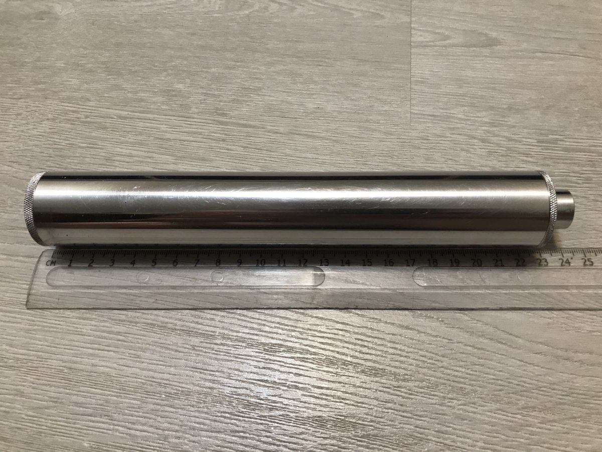 Собственно вот такой гибрид из реплики Grmtech . Сама по себе реплика, без вмешательств работает , но не слишком удовлетворительно . Потому было принято решение усовершенствовать данный девайс , добавив дополнительные камеры для расширения газов И догорания пороха , что в свою очередь дало свои положительные результаты. Модератор стал работать значительно тише. К сожалению прибора для измерения децибел нет, но на слух сразу всё стало понятно. Скептики скажут, что расширительные камеры надо было делать в начале, изначально так и задумывалось, но отцентровать всю конструкцию было крайне сложно, потому было принято решение вкрутить переходник на резьбу 13/1 левая в саму сердцевину Grmtech а затем уже набирать последующие камеры. И вот тогда добились успеха. И на удивление результат тоже порадовал . В принципе для мастера с правильными руками - это не паханное поле для воплощения своих новых идей . По характеристикам: общая длина- 24см ; диаметр- 34,5мм; вес - 291грамм. Проходное отверстие 10мм. Резьба 13/1LH Корпус и перегородки выполнены из Д16. Продаёт мой товарищ по причине того, что хочет продолжать новые эксперименты с другим девайсом для своего карабина. Есть возможность анодировать данный девайс за отдельную плату. Цена 1800грн. Резерв не больше суток.