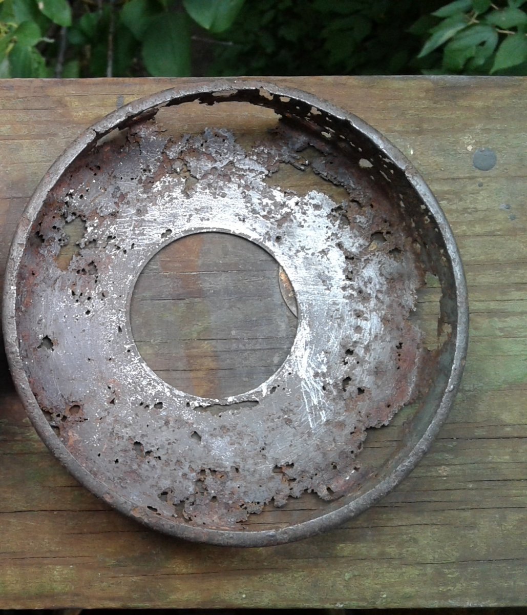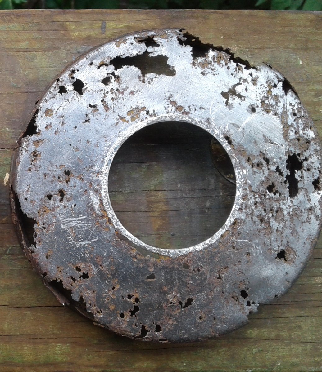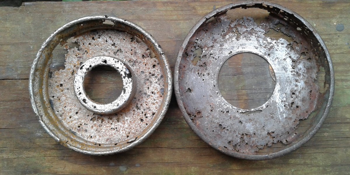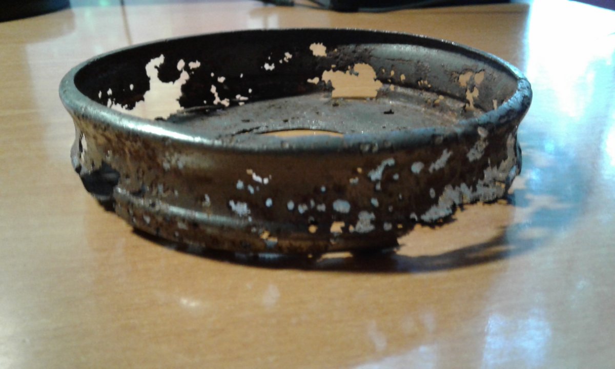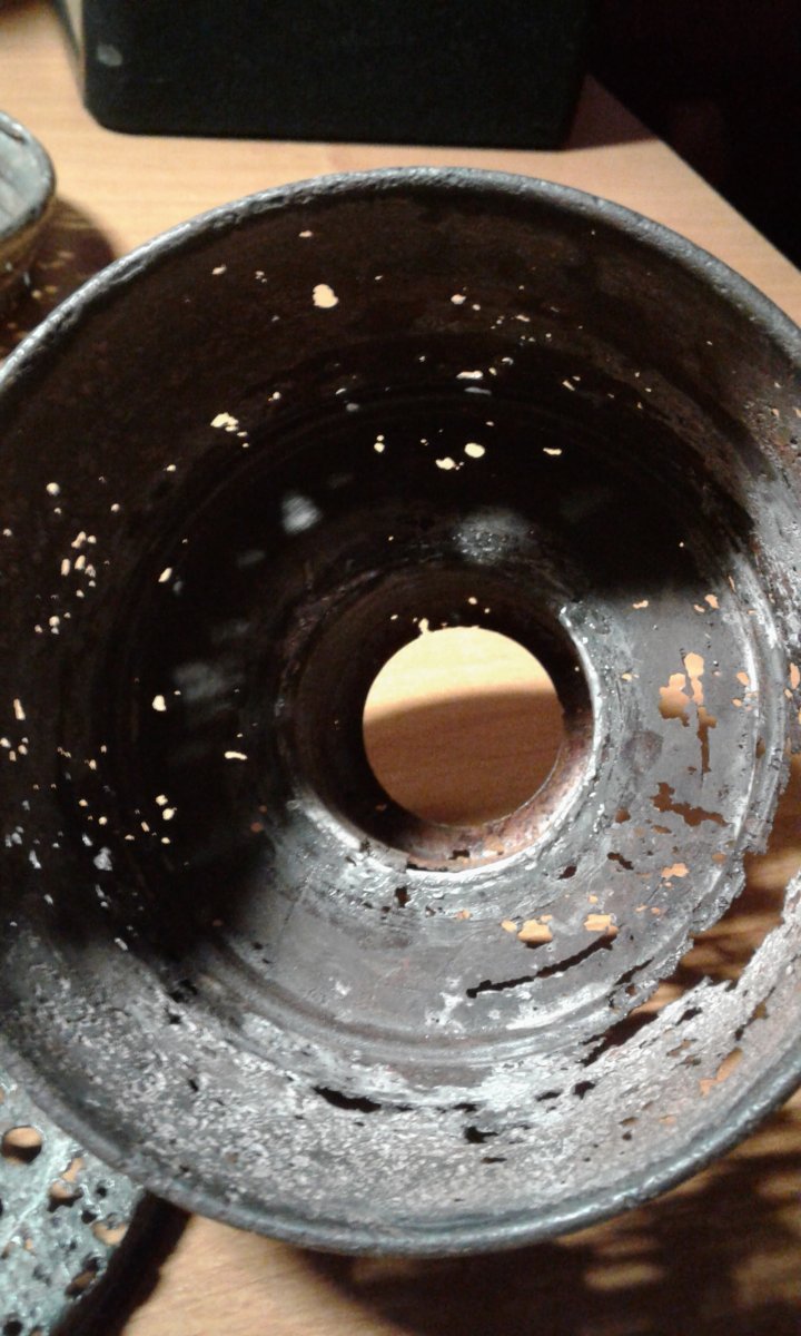 После чистки в лимонной кислоте, малую пришлось выбросить, так как рассыпалась в руках, а с большой тоже мало что осталось. На первый взгляд крепкая, после кислочения оказалась трухлой, резьба полностью раскрошилась, а от самой морды осталось решето. Думаю припаять резьбу с советского противогаза ГП-5, на вид вроде подходят, на оригинале кстати тоже была припаяна, на фото видно остатки припоя. Дыры попробую заделать эпоксидкой, может что и получится.