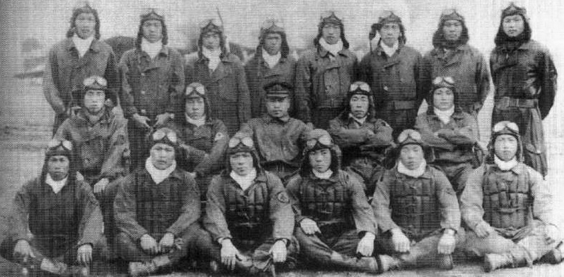 Группа японских пилотов с авианосца "Сёкаку", ноябрь 1941 года, база Оита. Во втором ряду второй слева - лейтенант Масао Идзука, рядом - капитан Такуми Хоаши.
